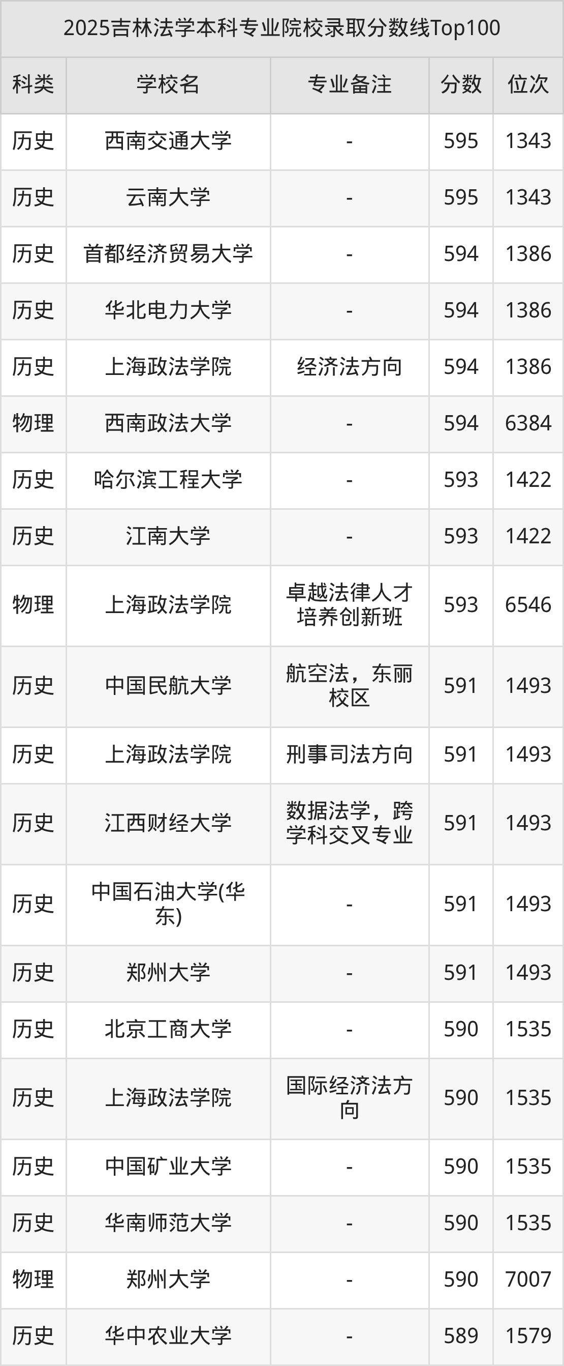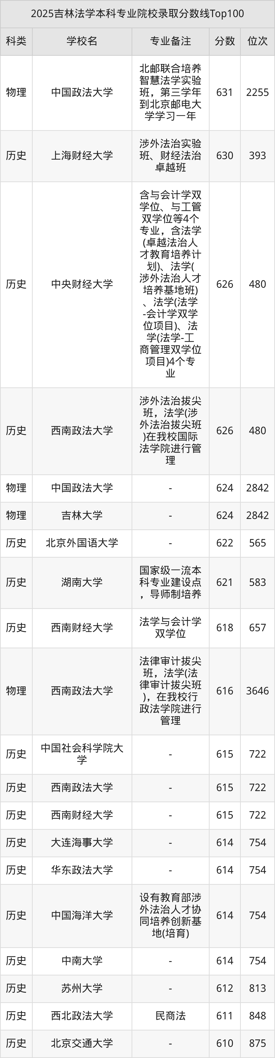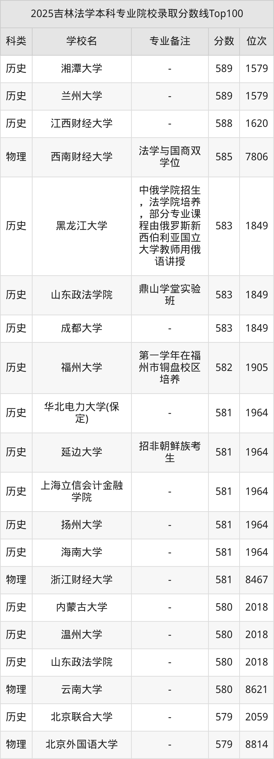 2025年吉林法学分数线排名前5的大学名单(本科最难报考):
