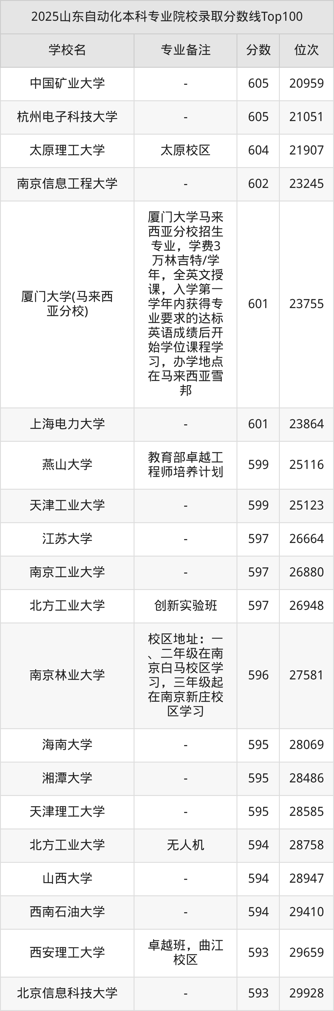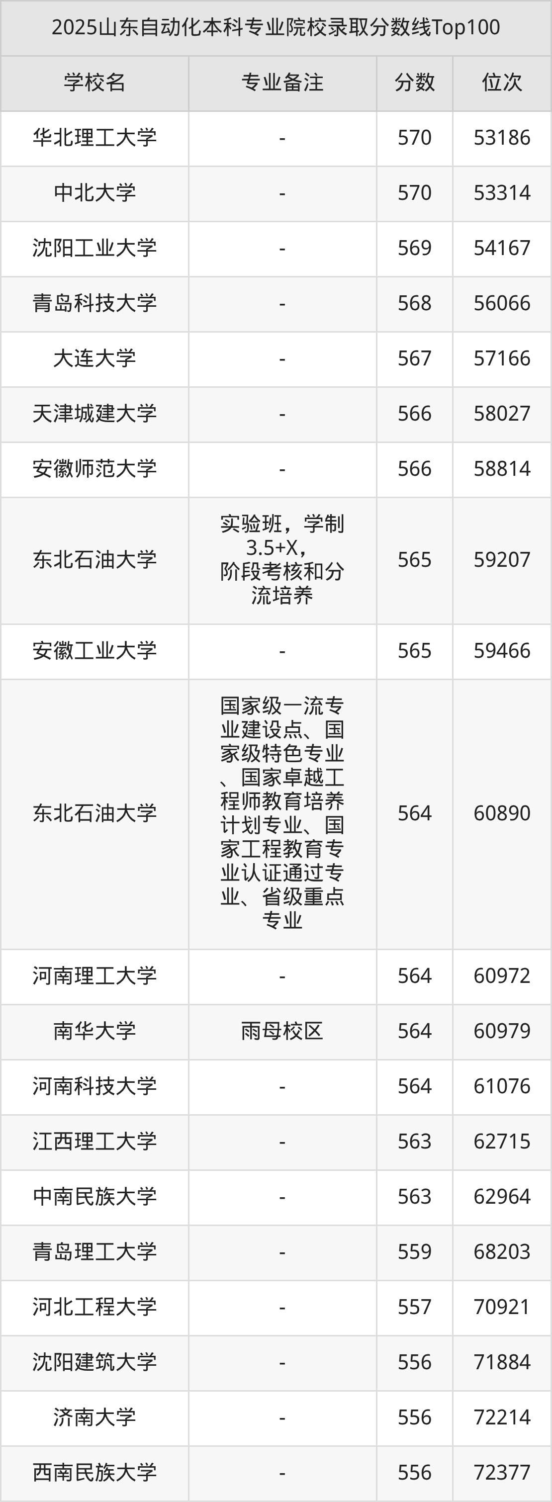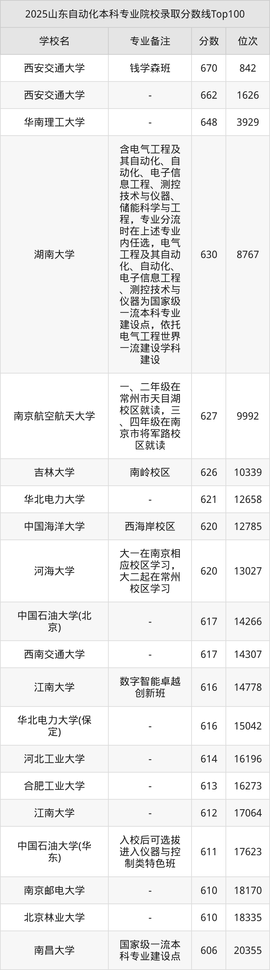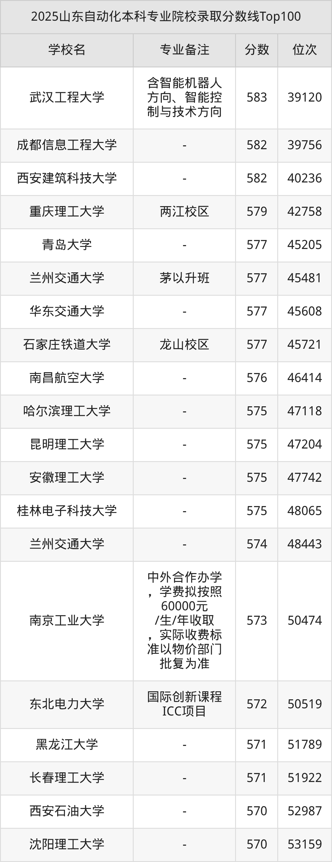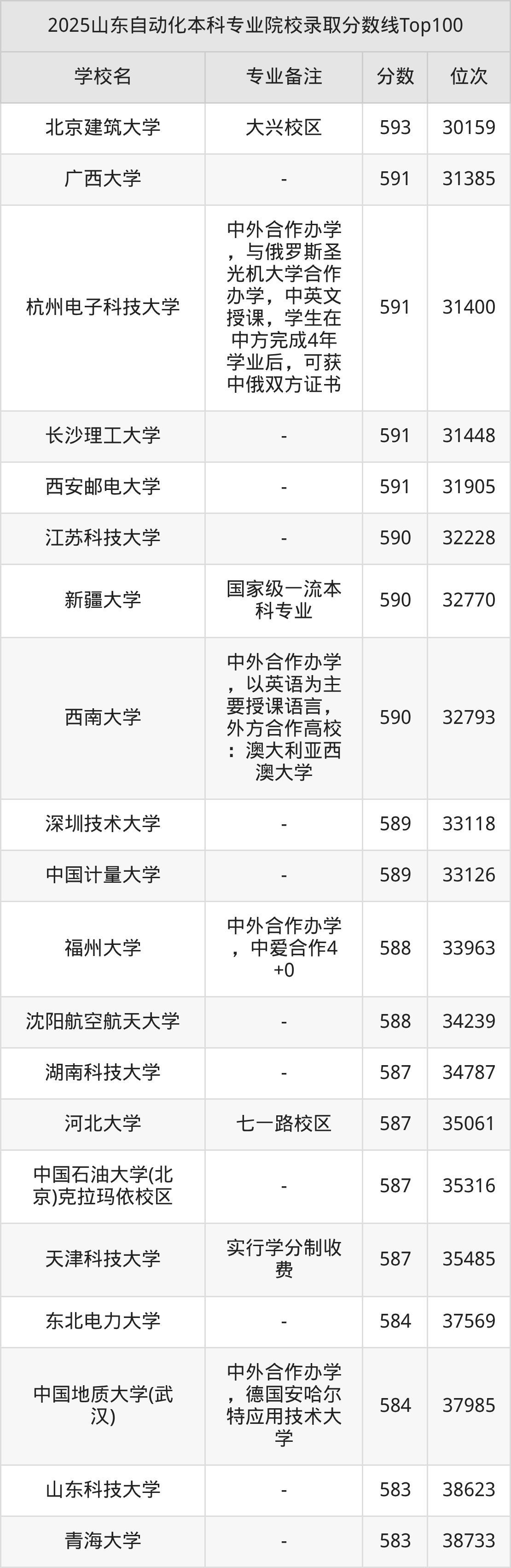 2025年山东自动化分数线排名前5的大学名单(本科最难报考):
