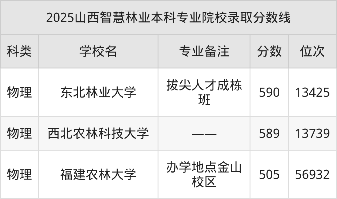 2025年山西智慧林业分数线排名前3的大学名单(本科最难报考):