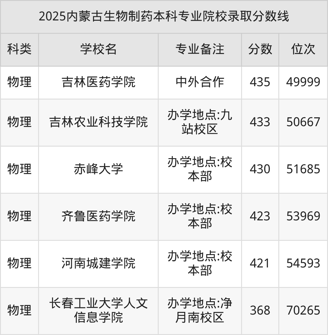 一、内蒙古2025生物制药本科
