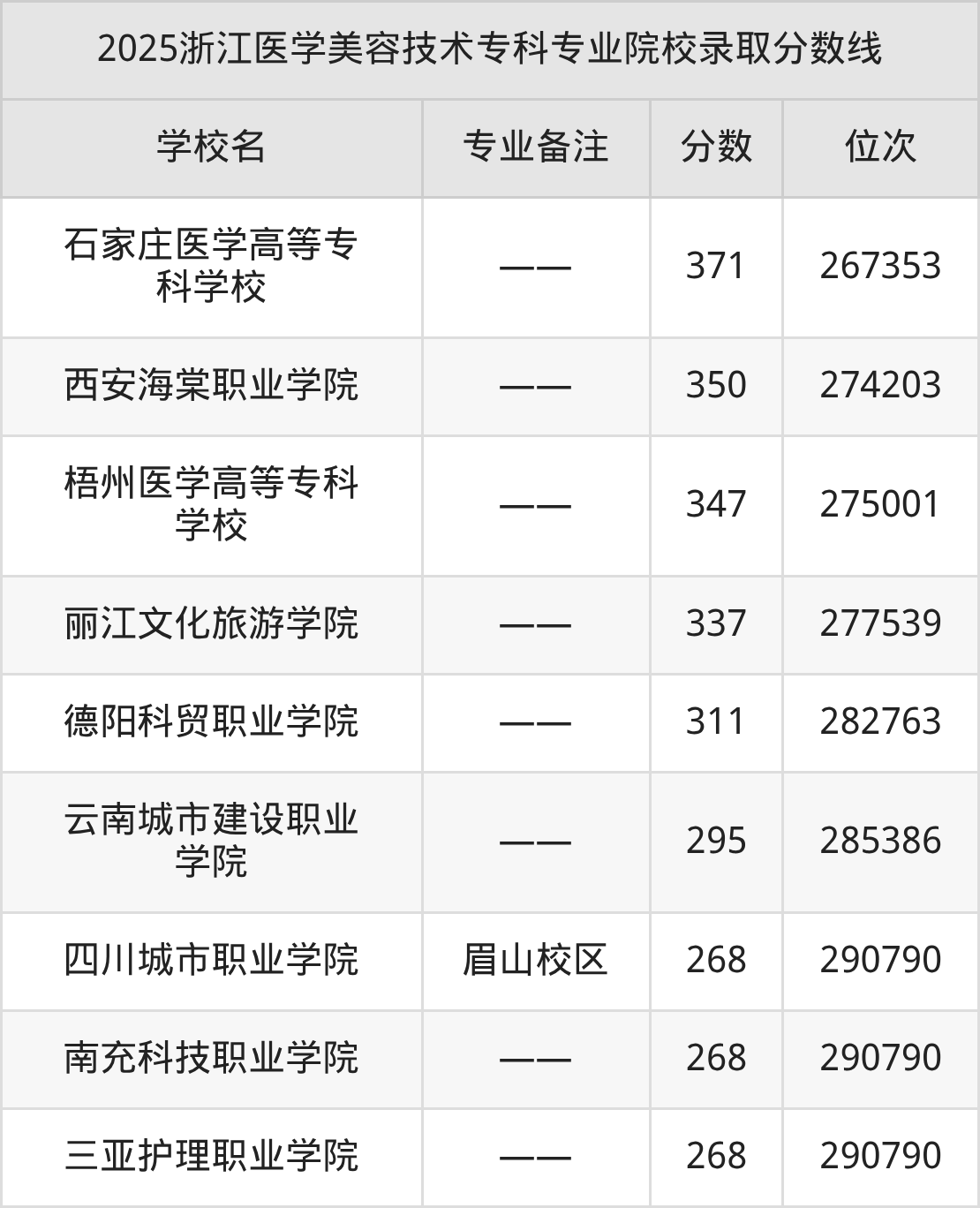 2025年浙江医学美容技术分数线排名前5的大学名单(专科最难报考):