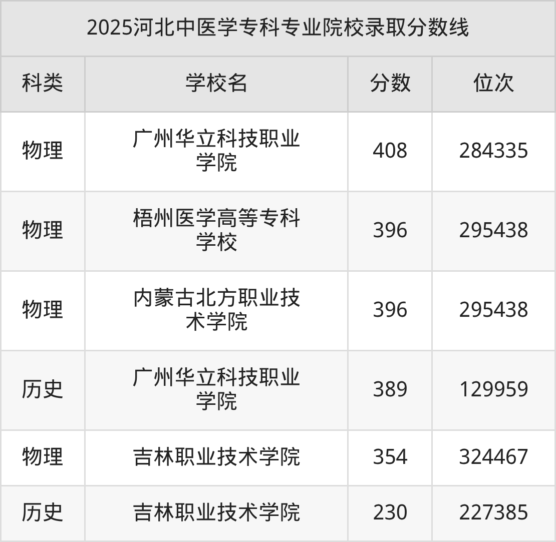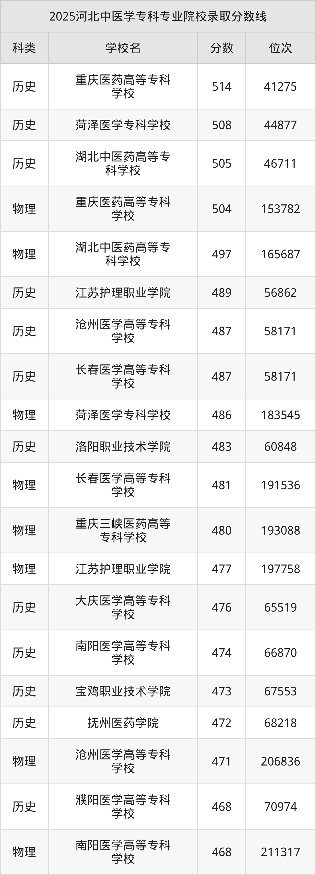2025年河北中医学专科专业招生院校有38所,分数最低的是吉林职业技术学院(230分、历史类位次227385名),分数最高的是重庆医药高等专科学校(514分、历史类位次41275名)。