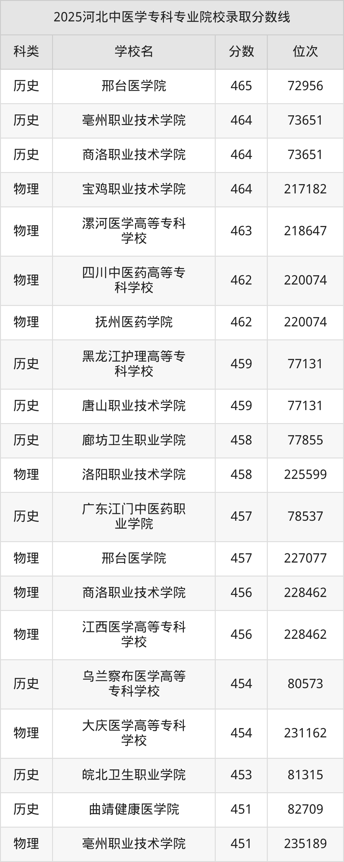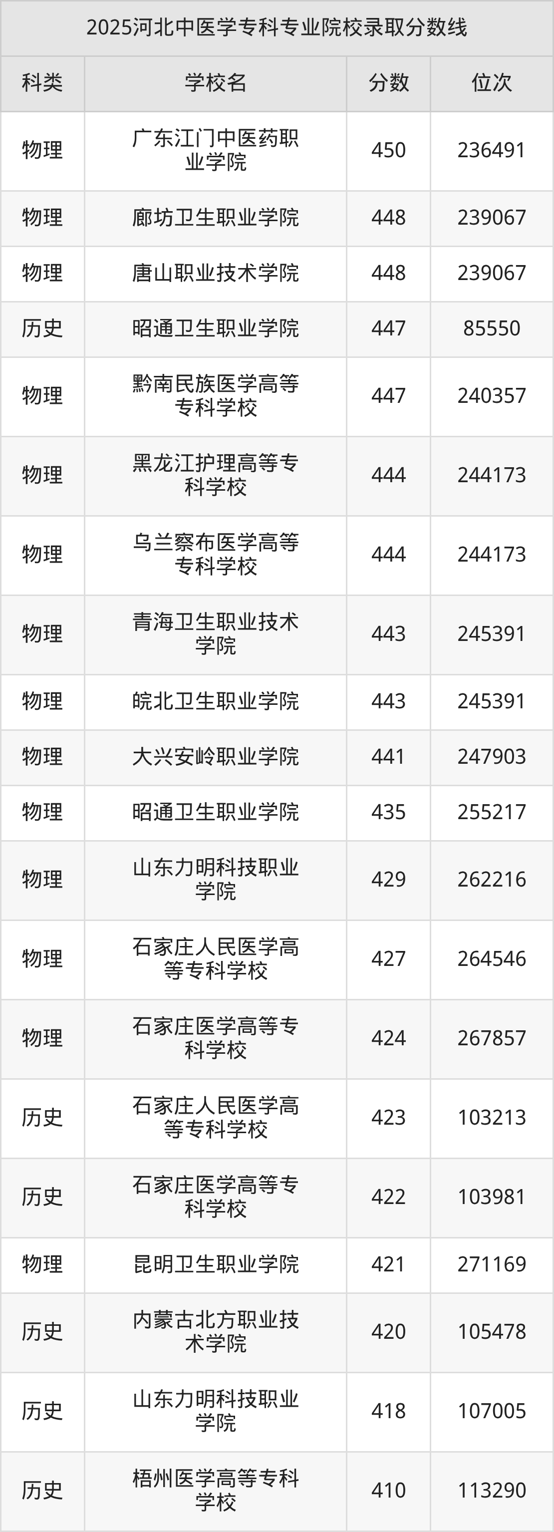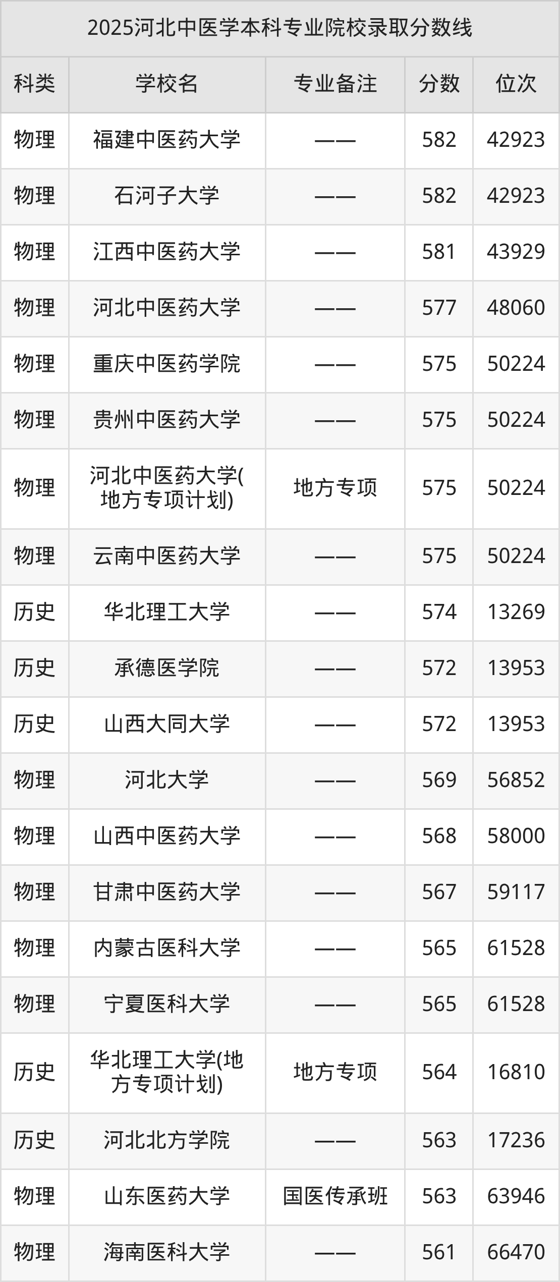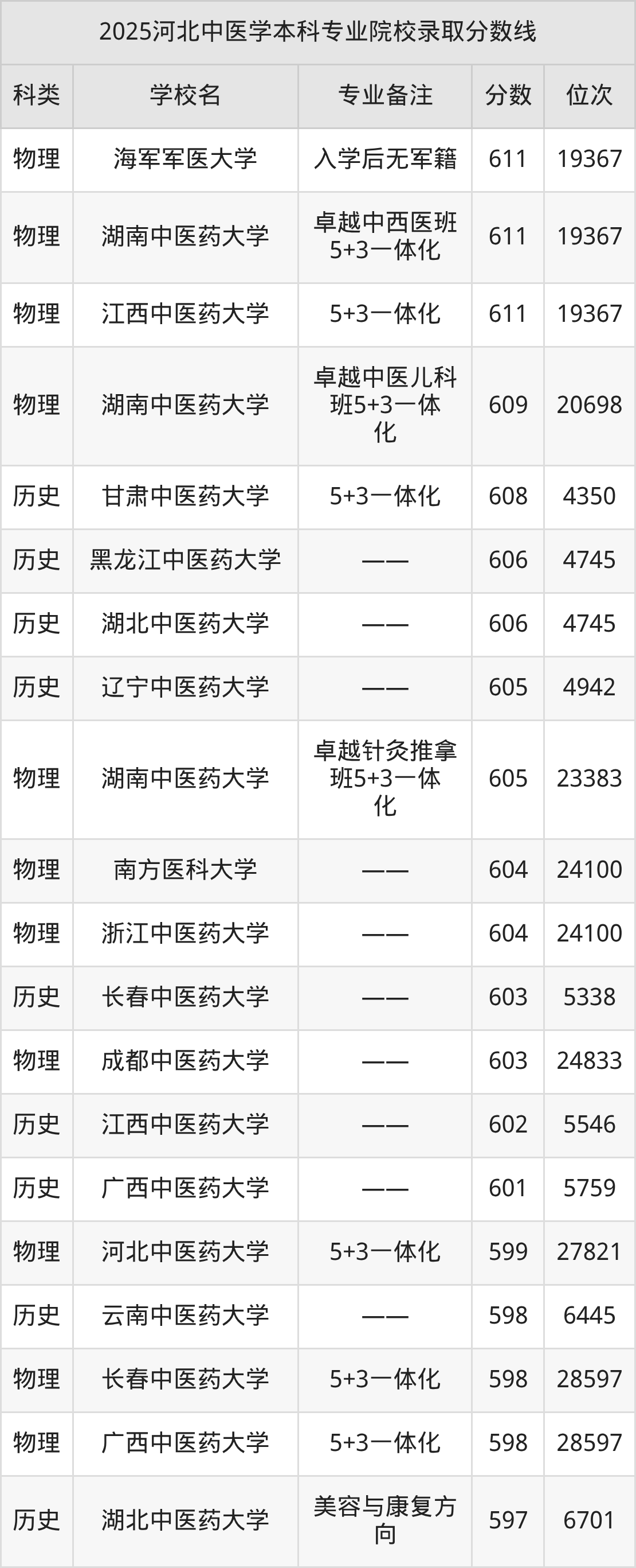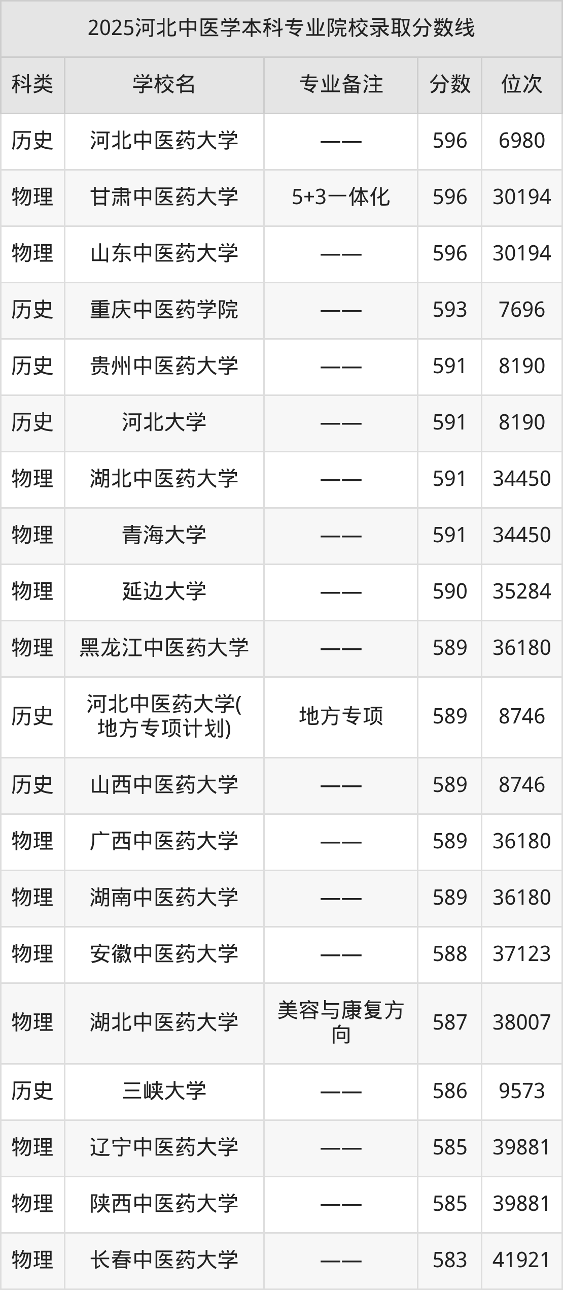 2025年河北中医学分数线排名前5的大学名单(本科最难报考):