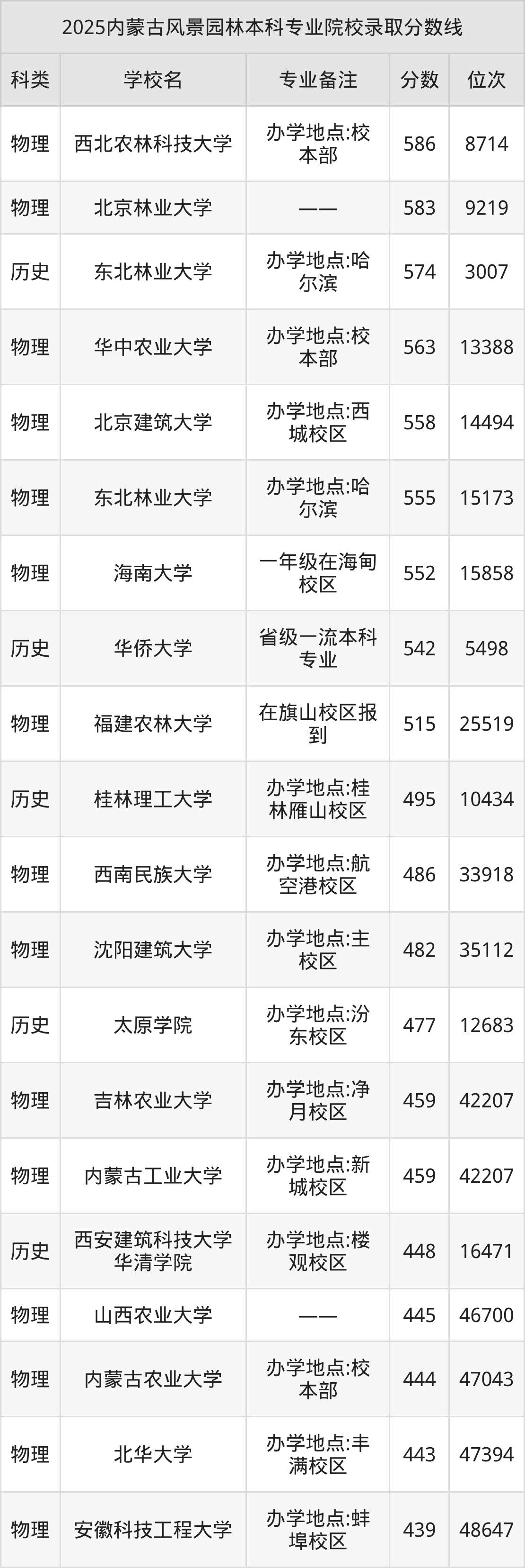 2025年内蒙古风景园林分数线排名前5的大学名单(本科最难报考):