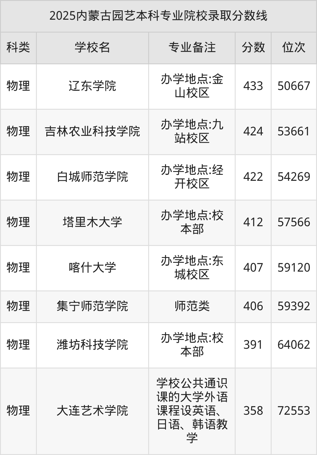 从院校办学性质来看,本科园艺公办院校最低分在406分及以上,低分对应院校为集宁师范学院,2025年超本科线31分录取。民办院校最低分在358分及以上,低分对应院校为大连艺术学院,2025年本科线下17分录取。
