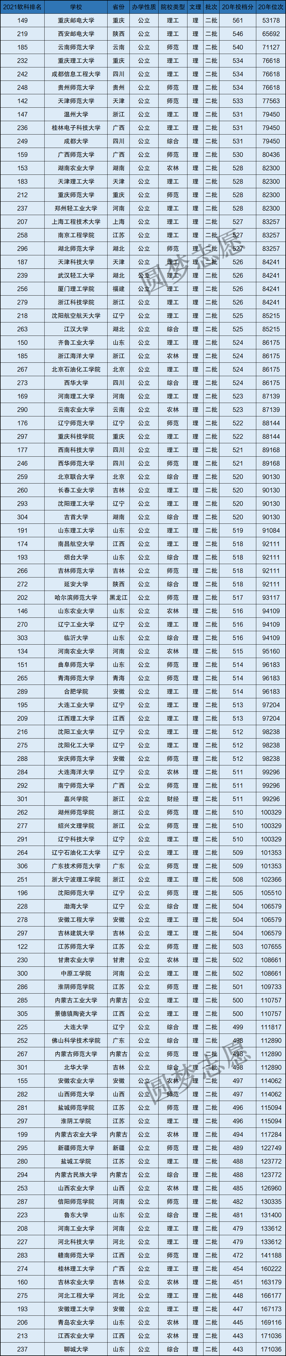 2020投档分531,位次79450,2021年软科排名147名