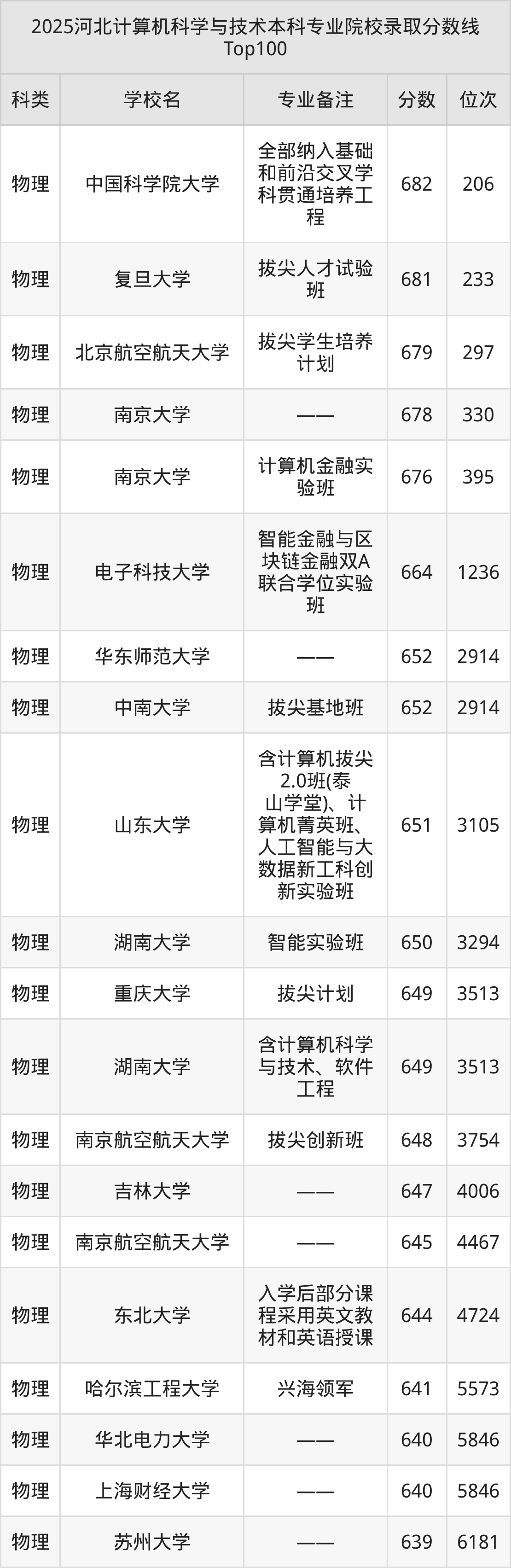 1、中国科学院大学:计算机科学与技术(全部纳入基础和前沿交叉学科贯通培养工程)682分、物理类位次206名;