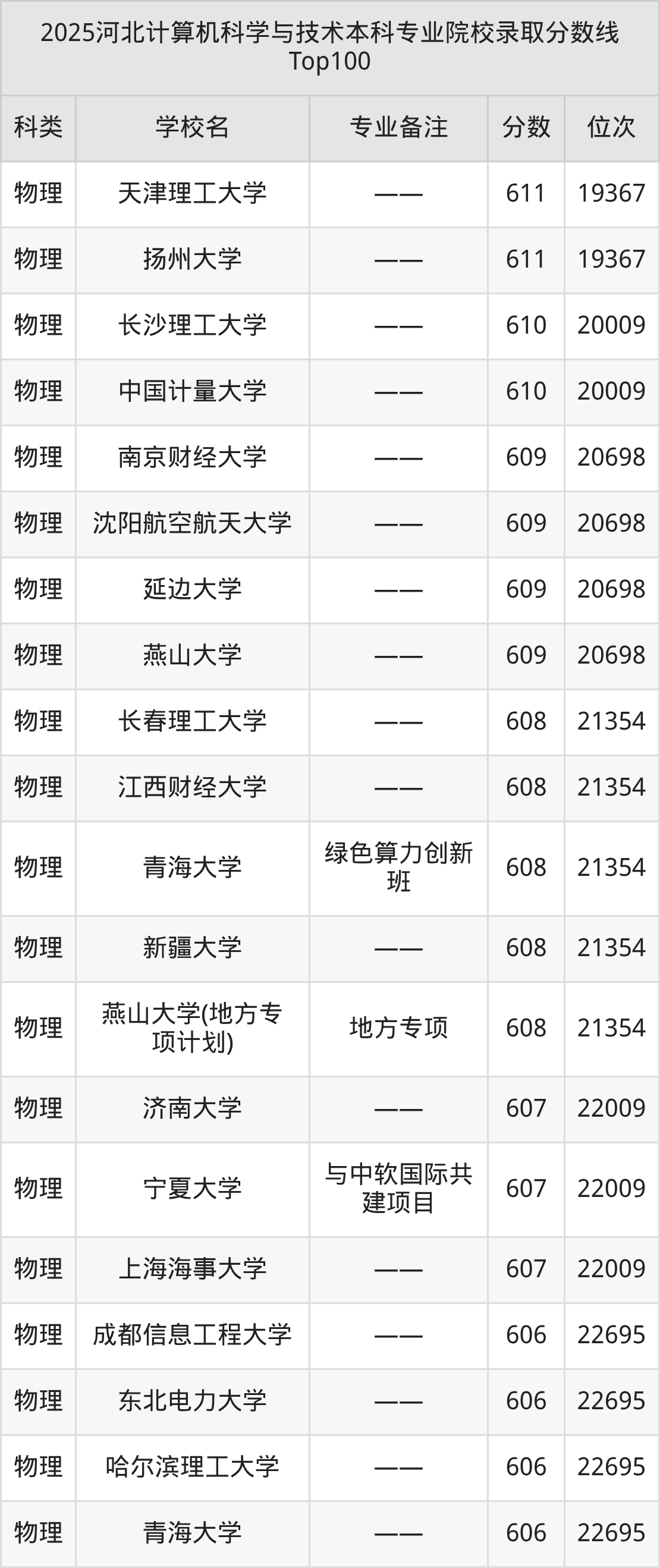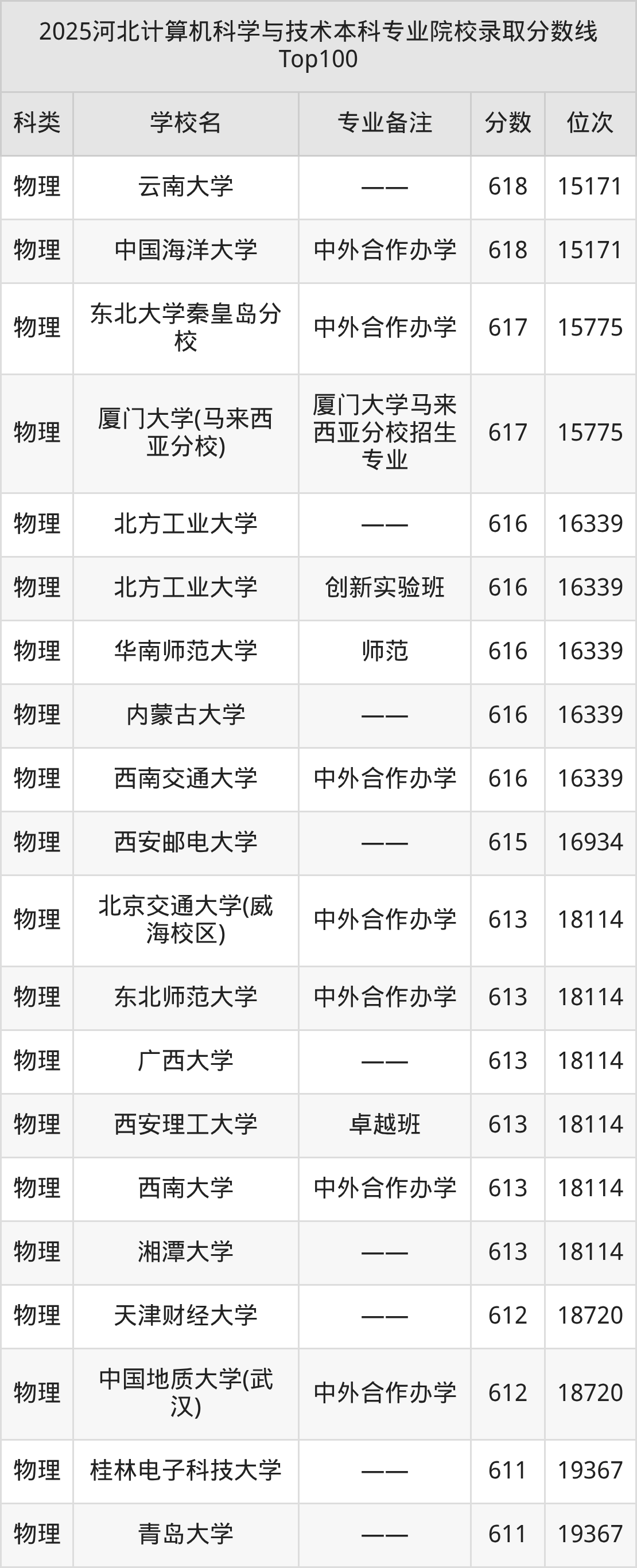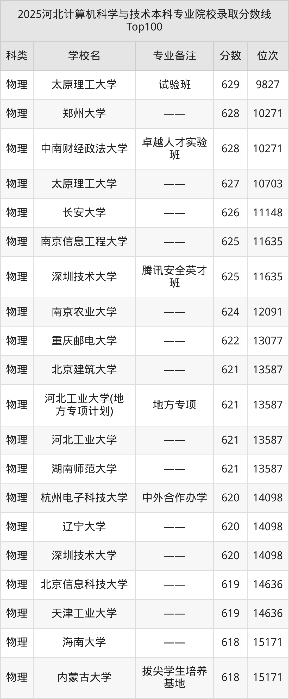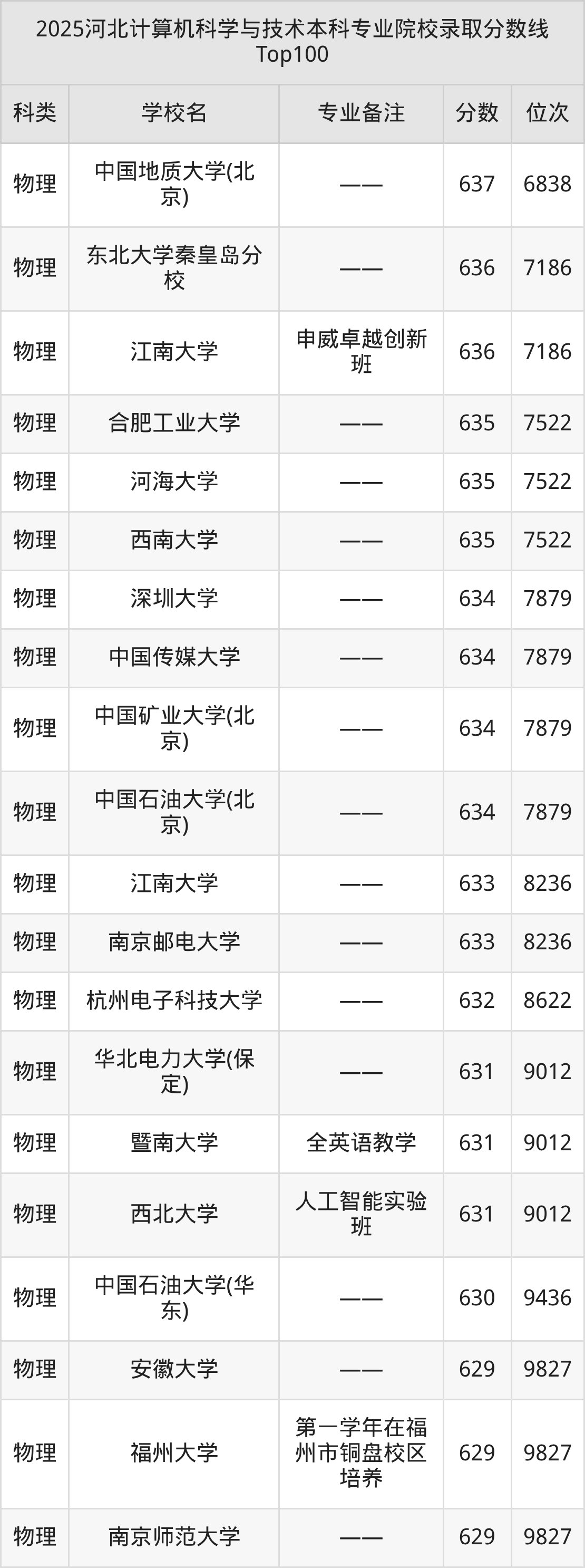 2025年河北计算机科学与技术分数线排名前5的大学名单(本科最难报考):