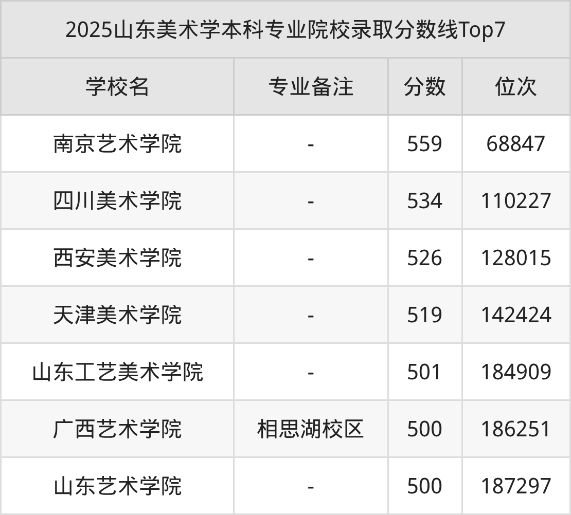 2025年山东美术学分数线排名前5的大学名单(本科最难报考):