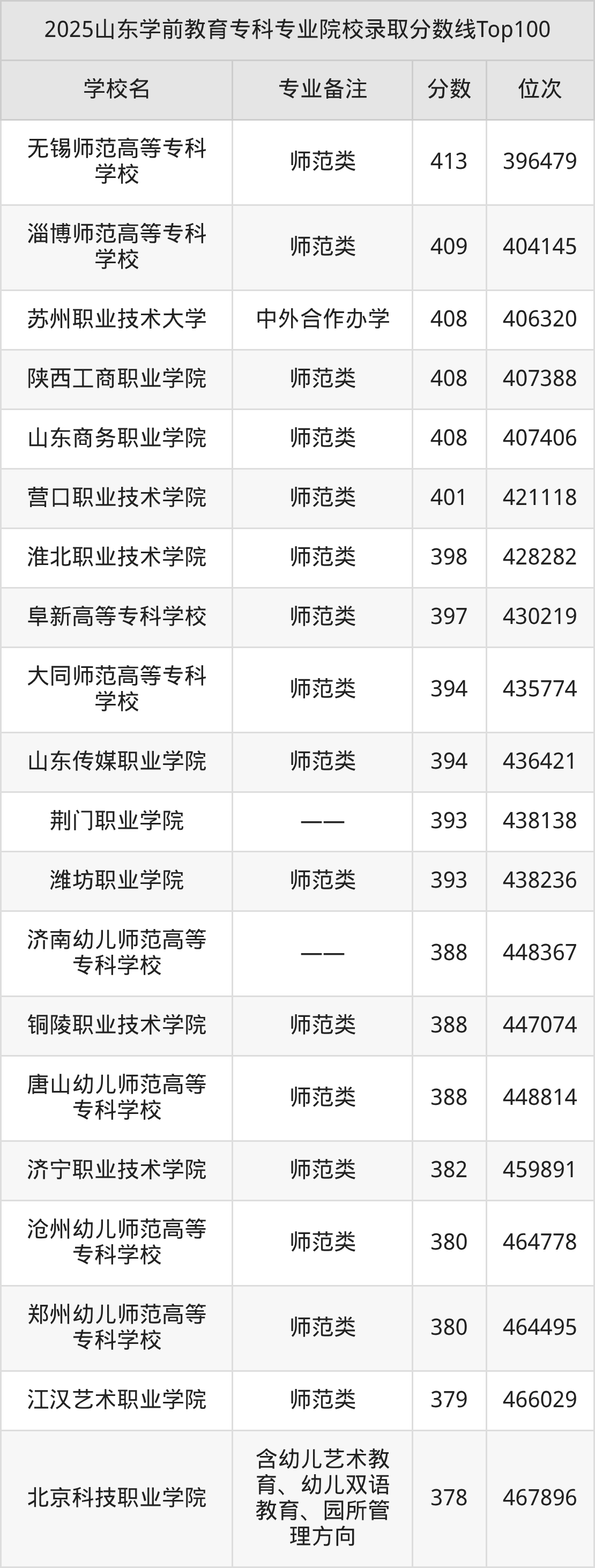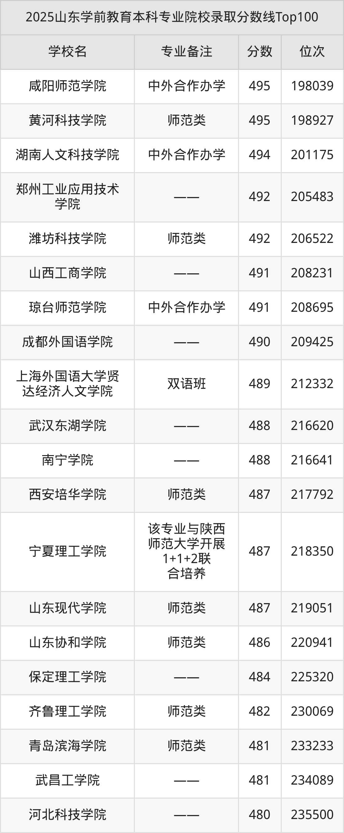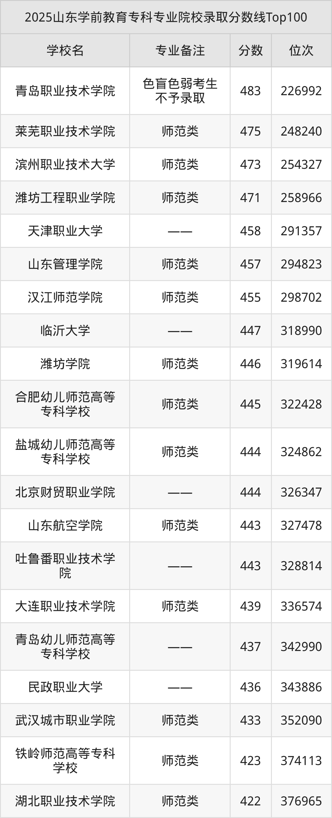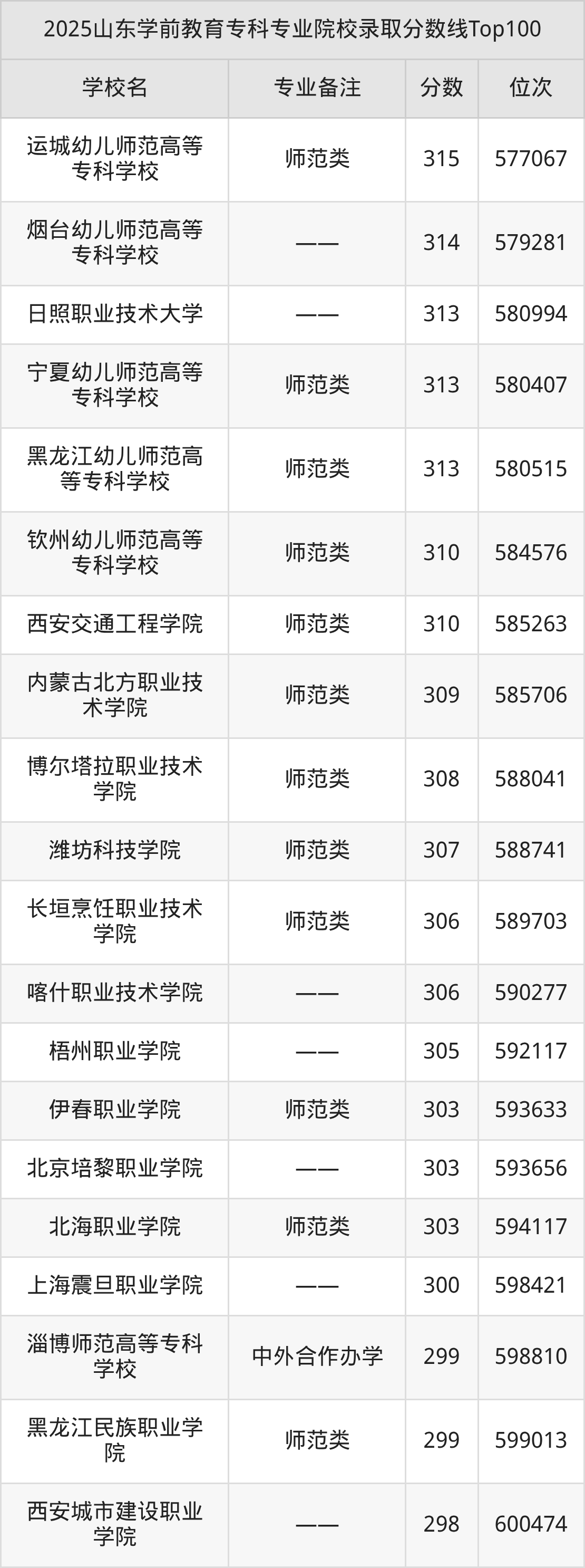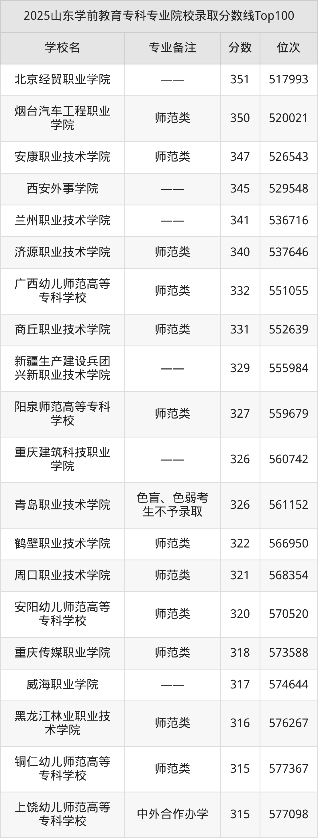二、山东2025学前教育专科