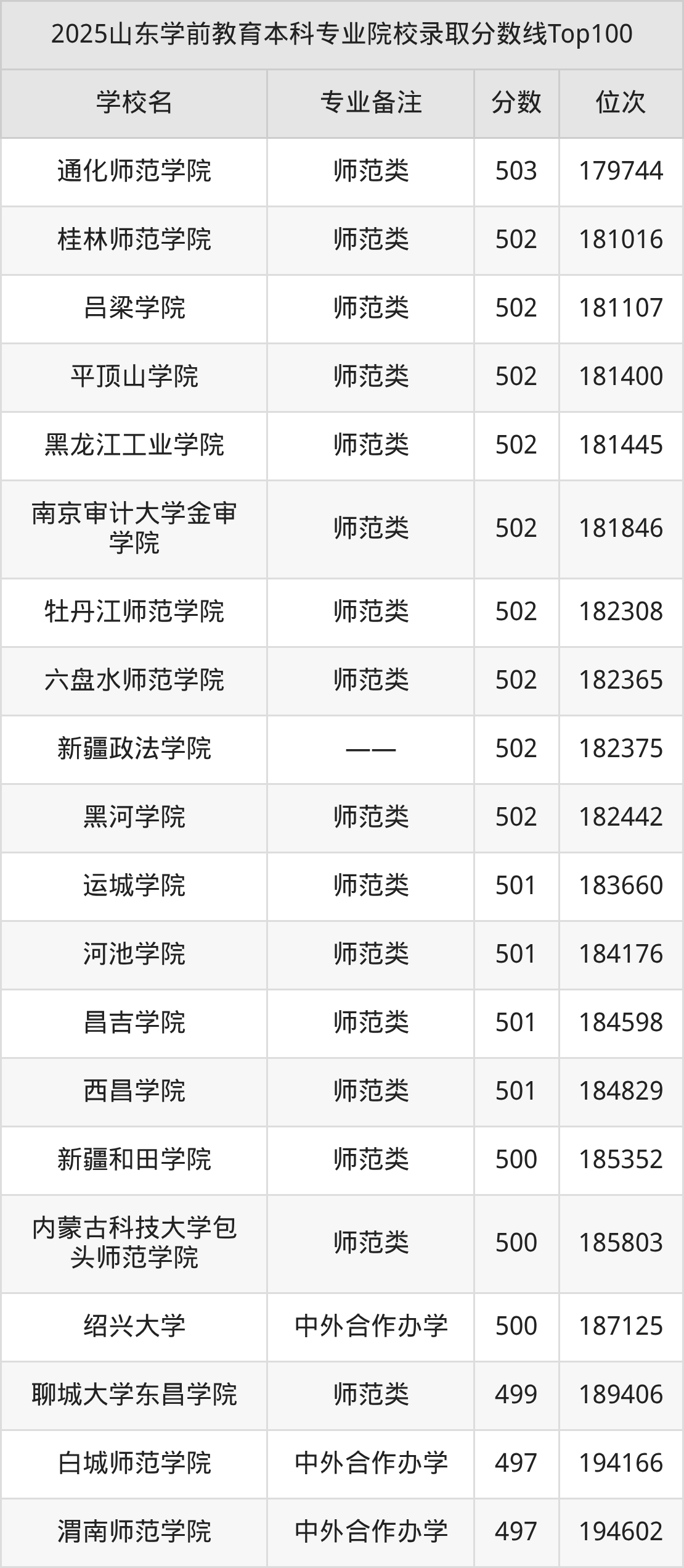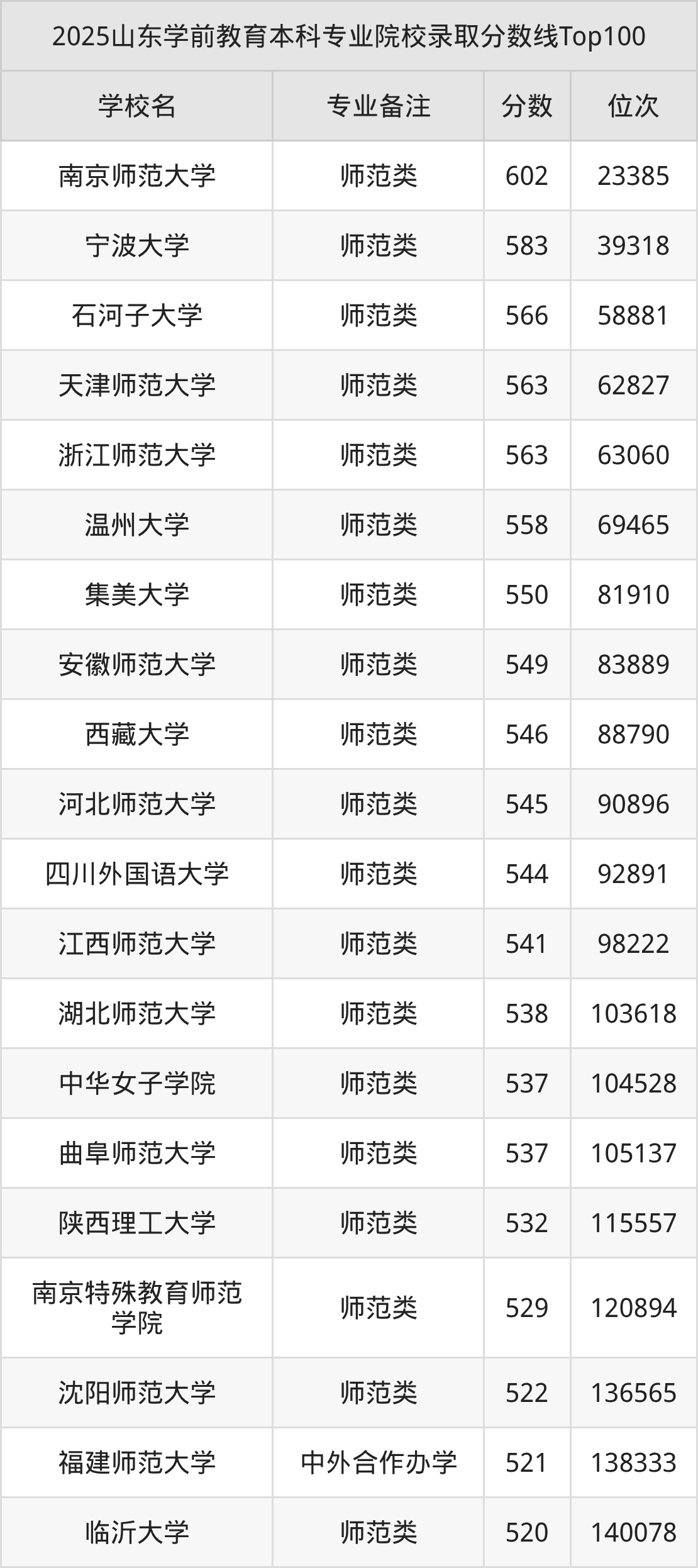 2025年山东学前教育分数线排名前5的大学名单(本科最难报考):