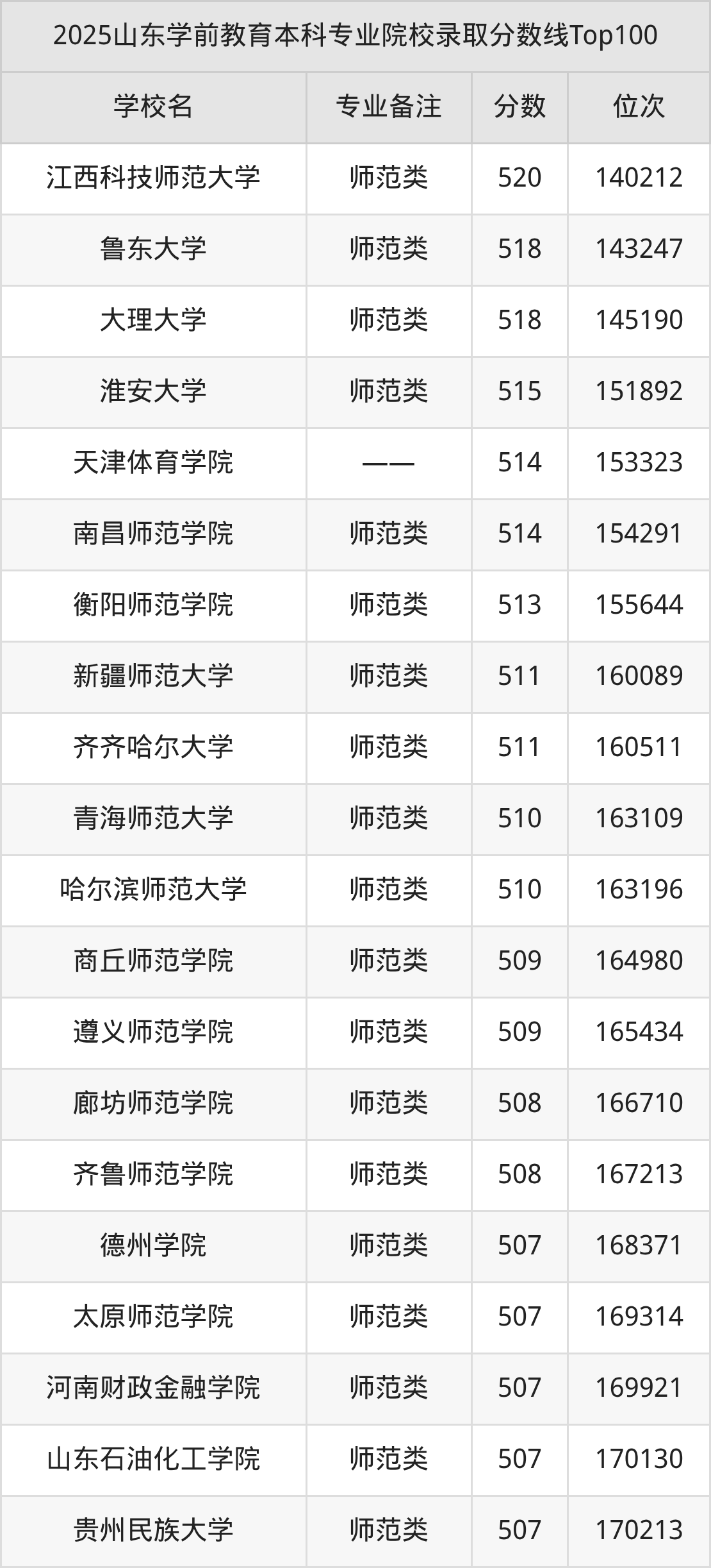 | 齐鲁师范学院 | B | 173 |