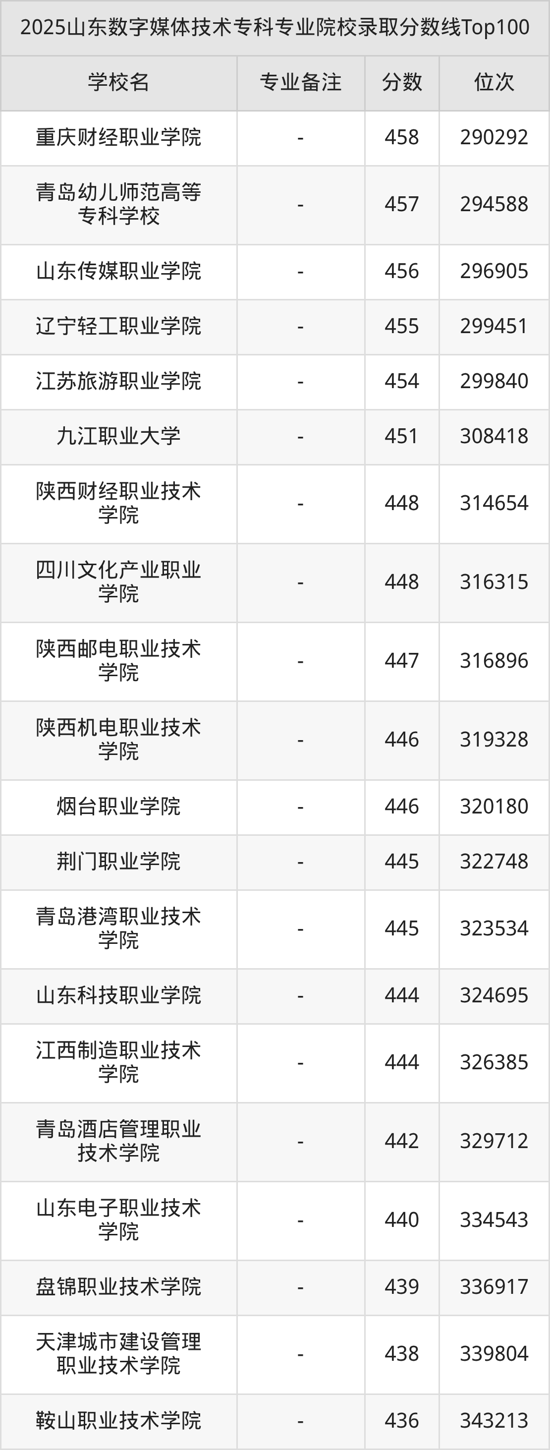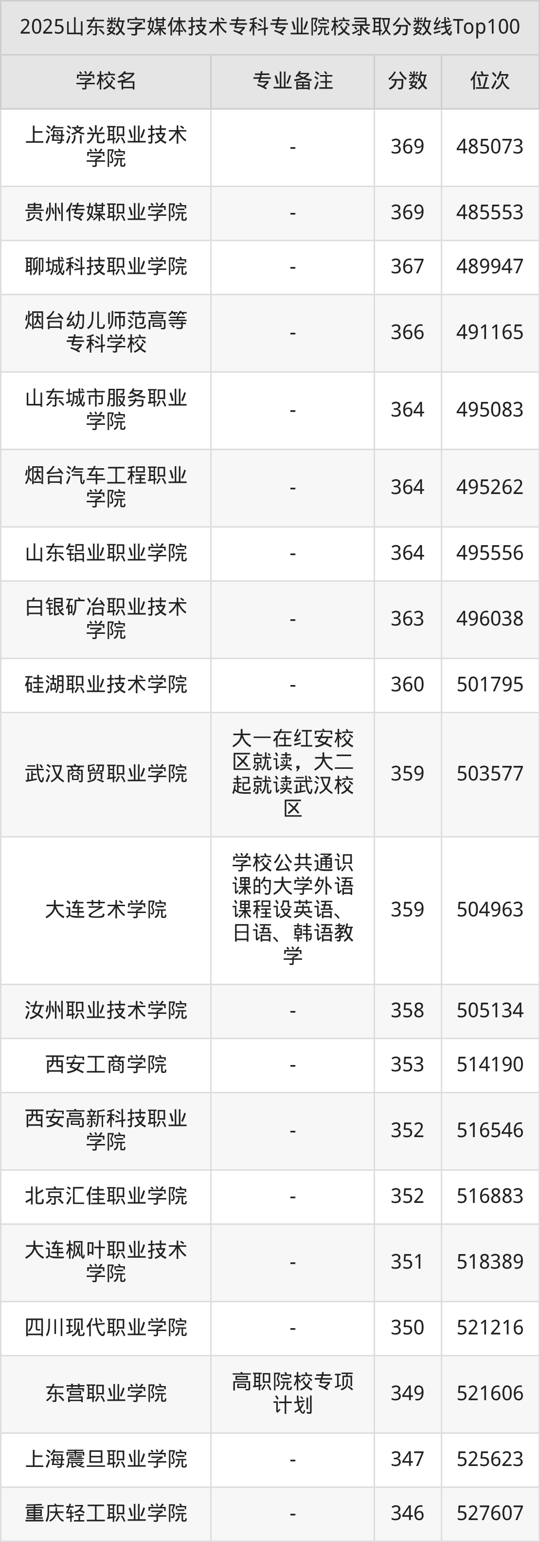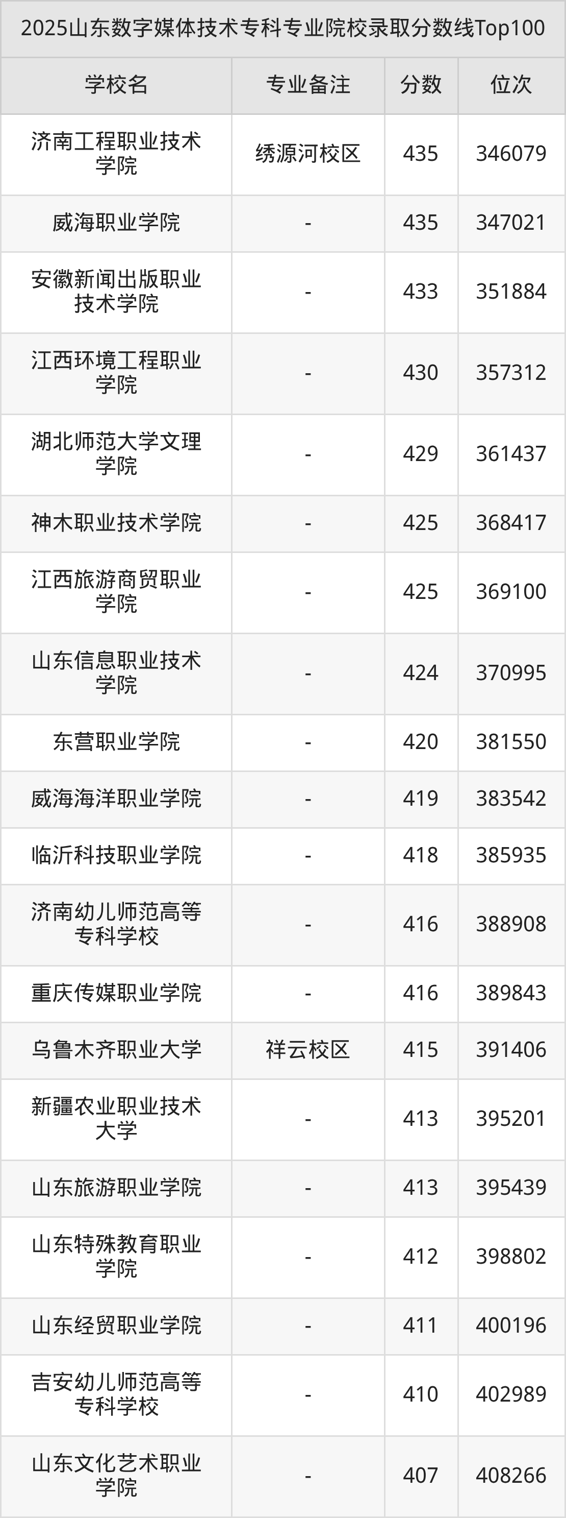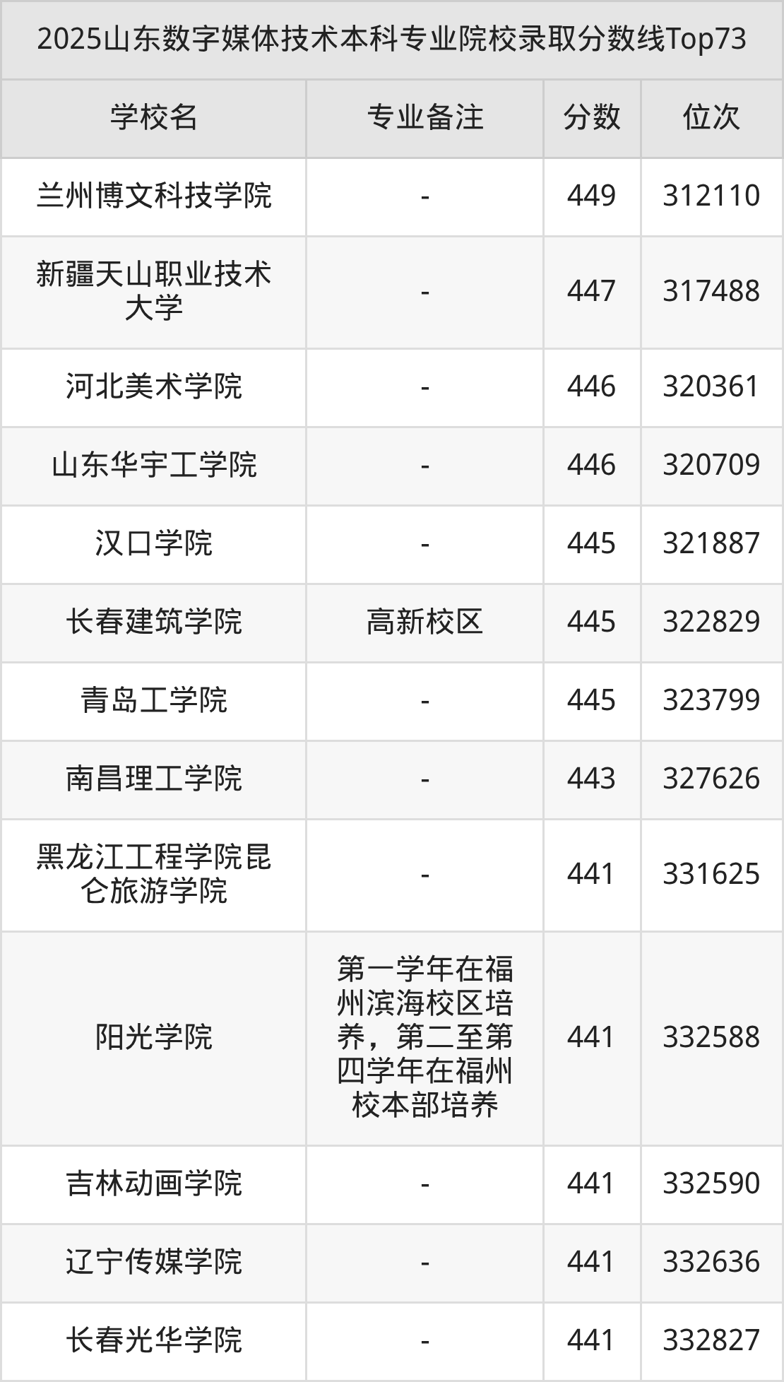 2025年山东数字媒体技术分数线排名前5的大学名单(本科最难报考):