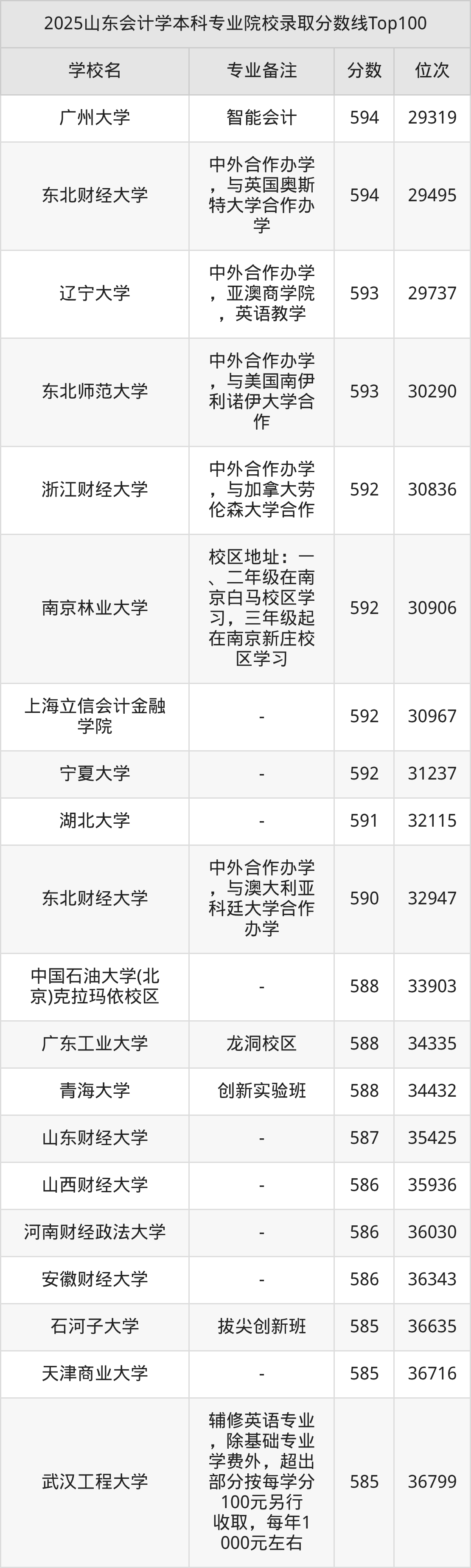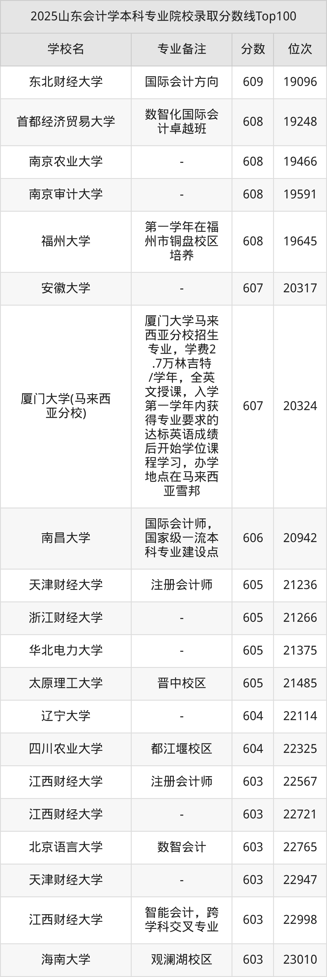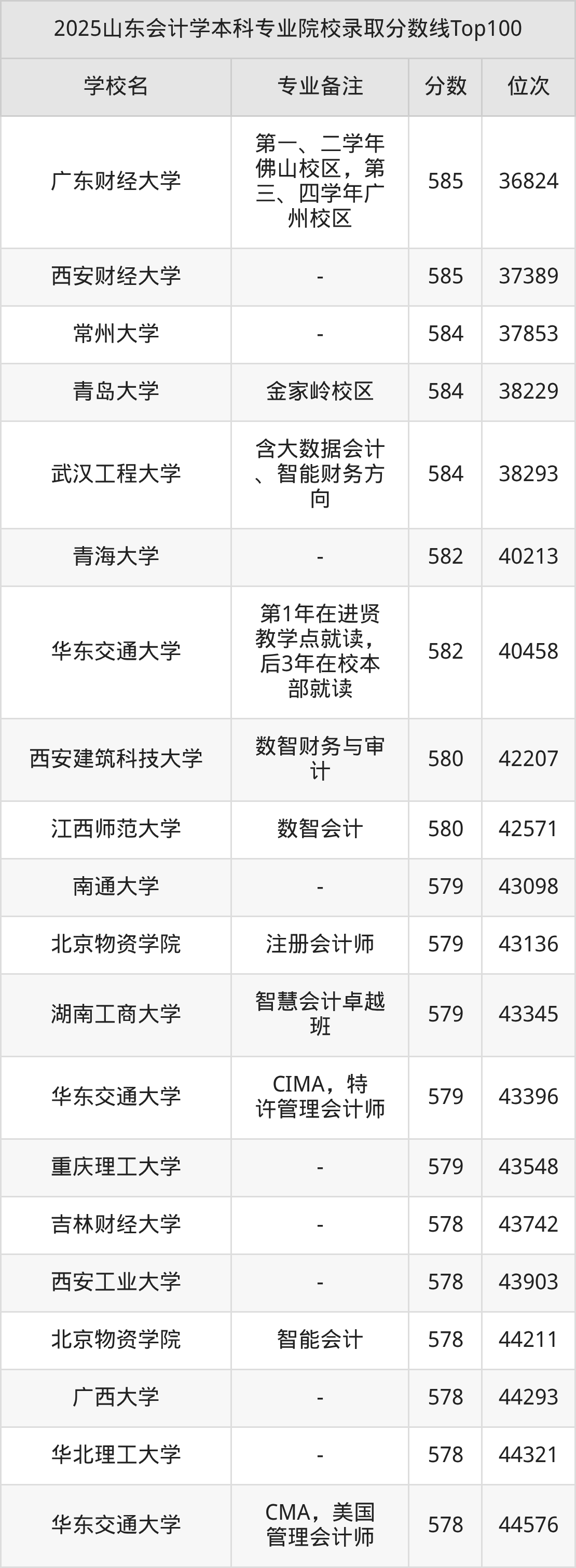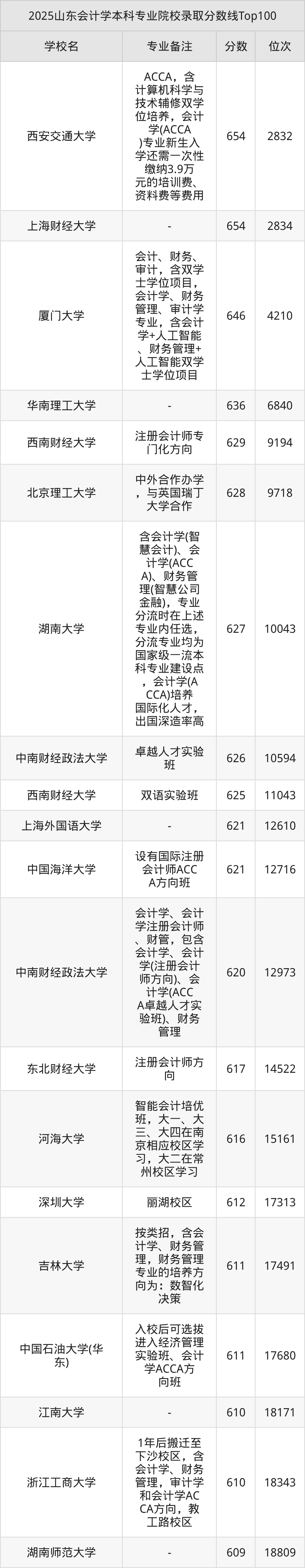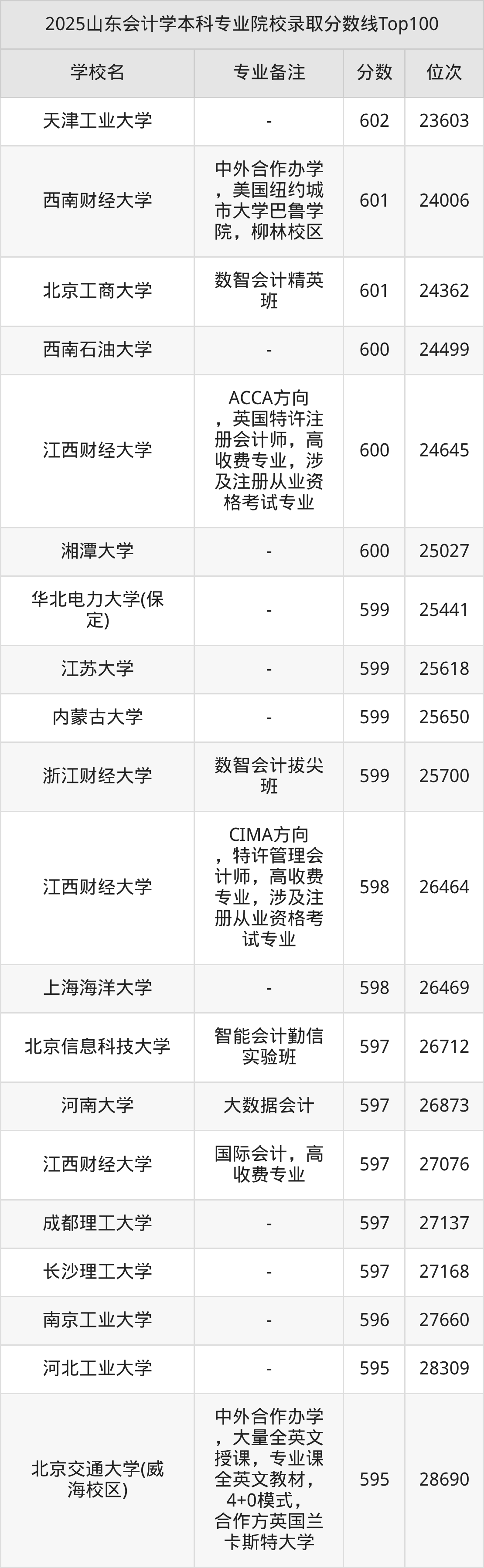 2025年山东会计学分数线排名前5的大学名单(本科最难报考):