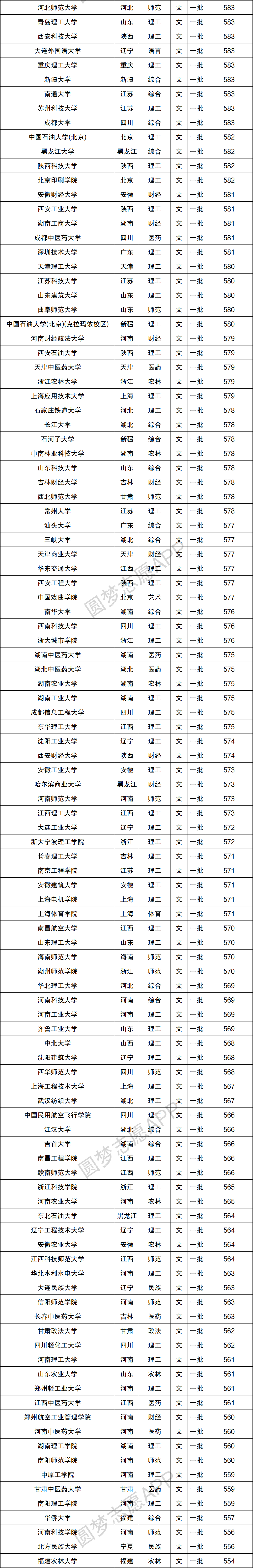 可以看到,河南文科能报考的一本大学是很多的,这些学校主要可以分为三个档次: