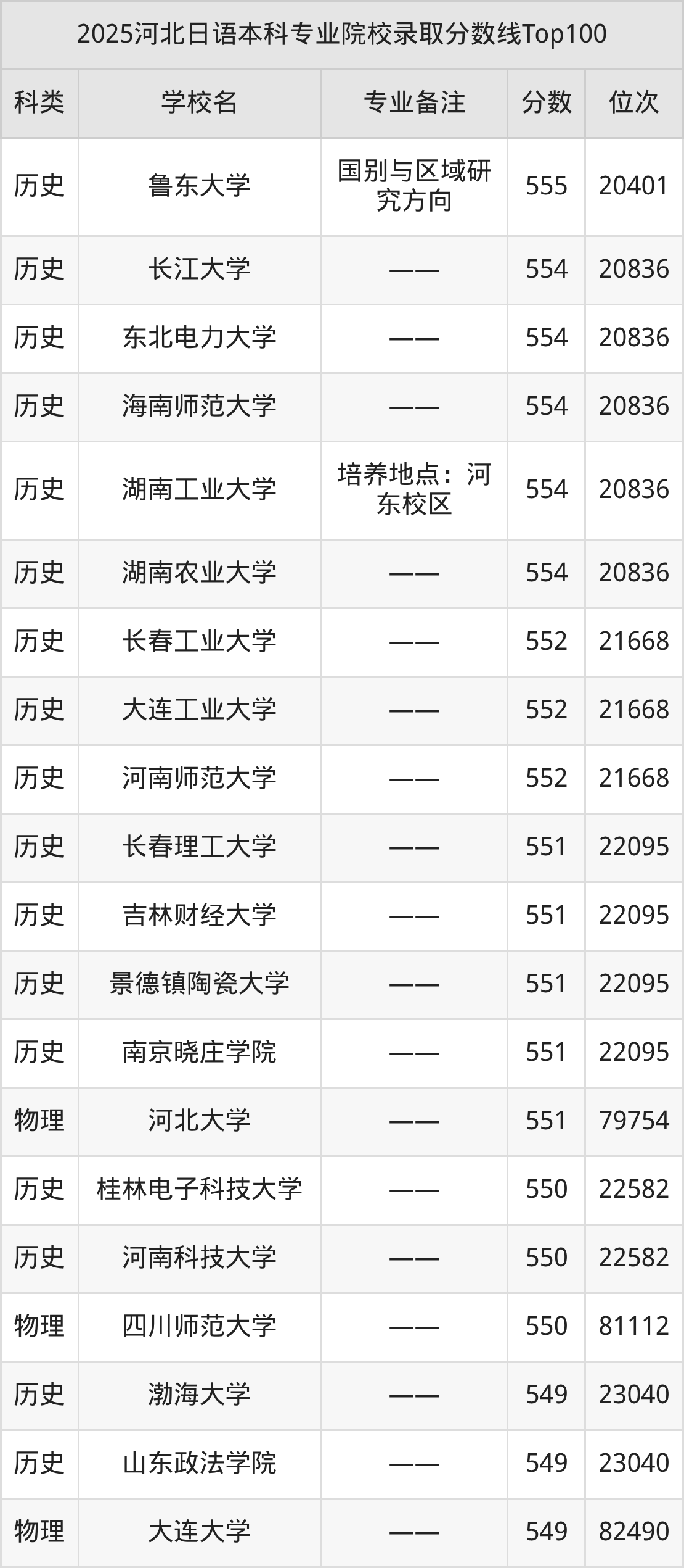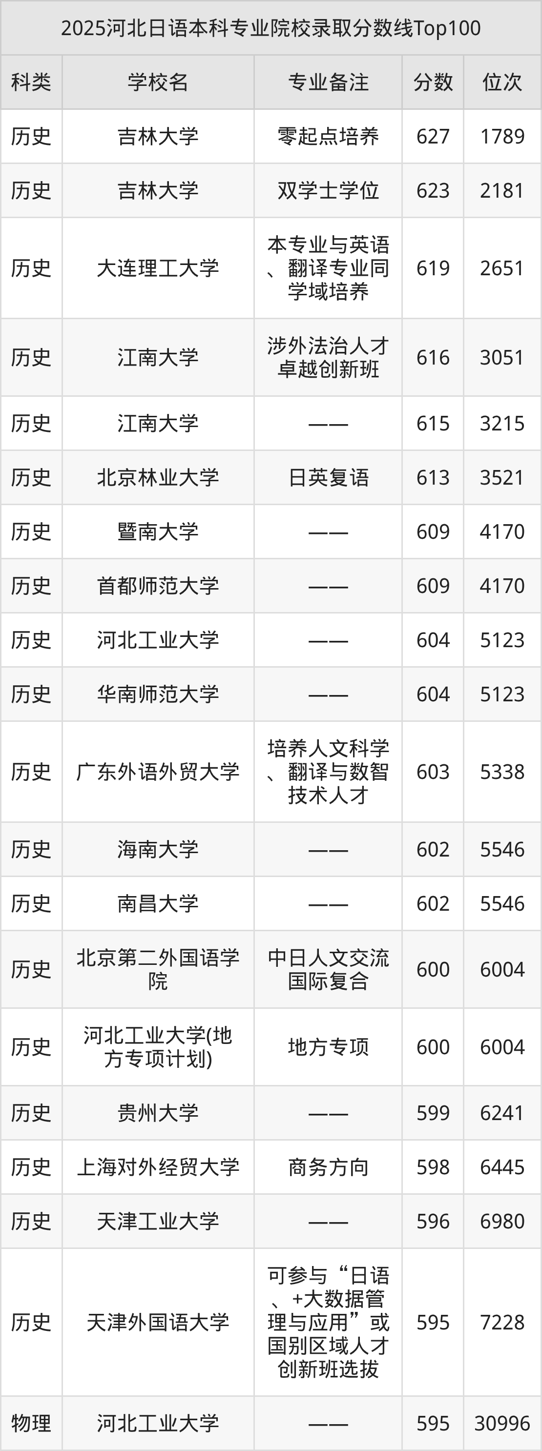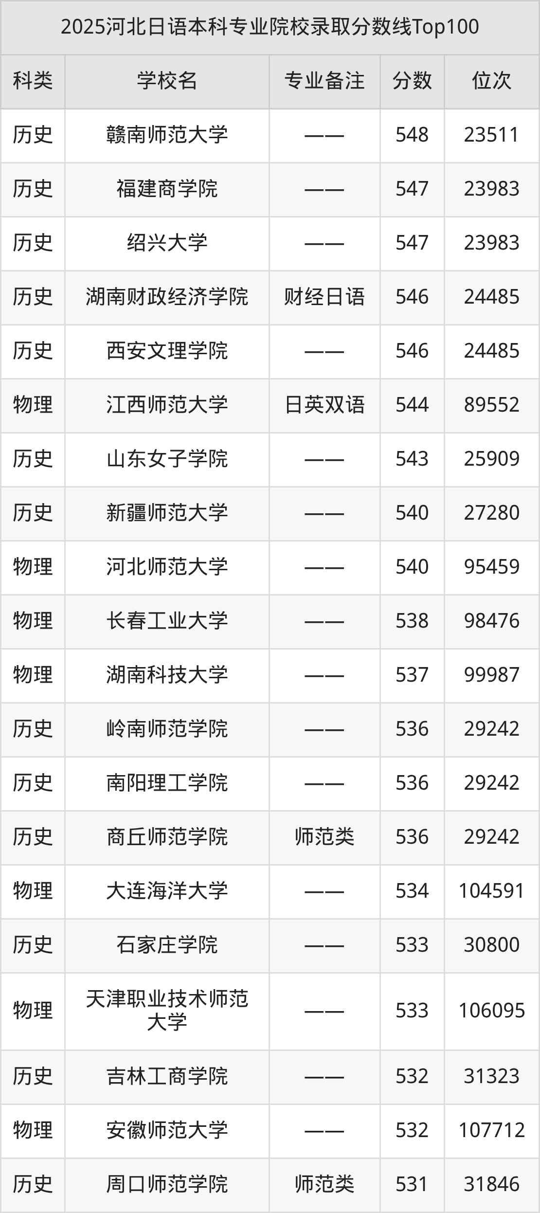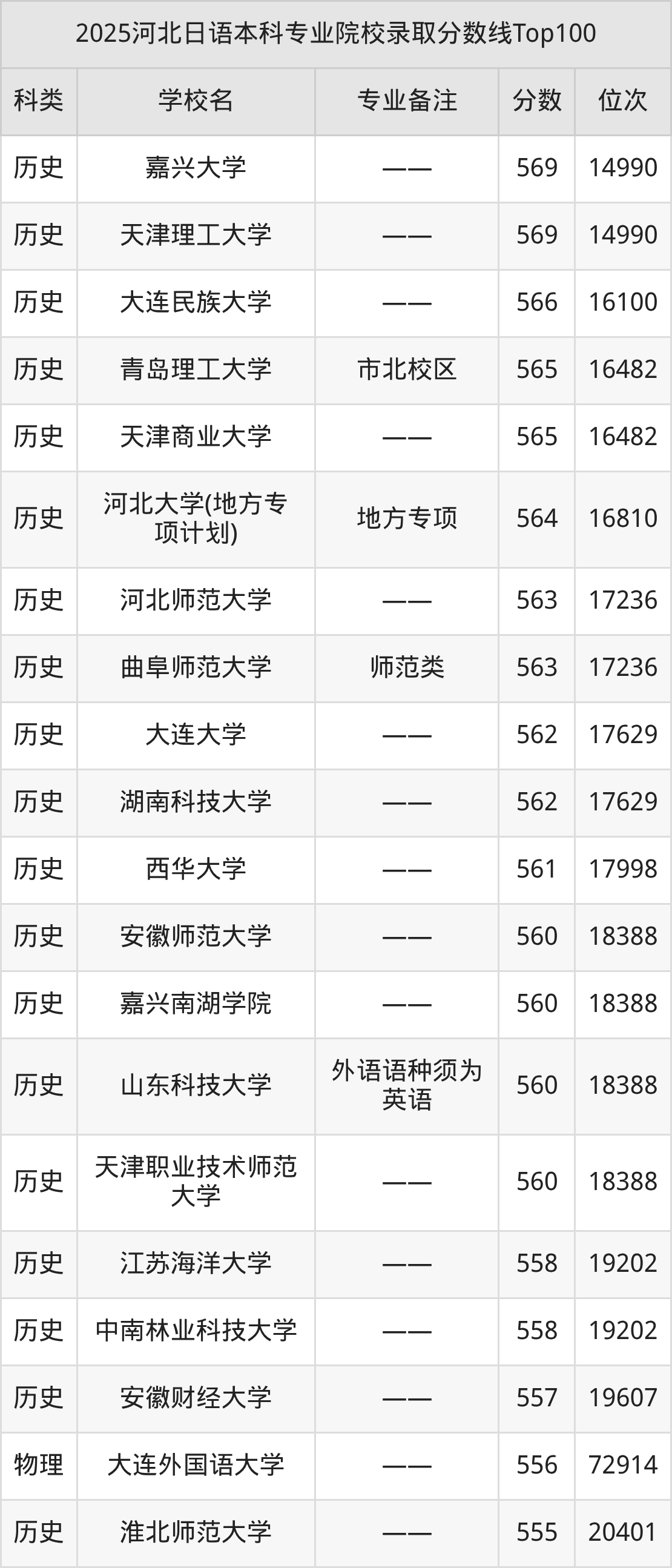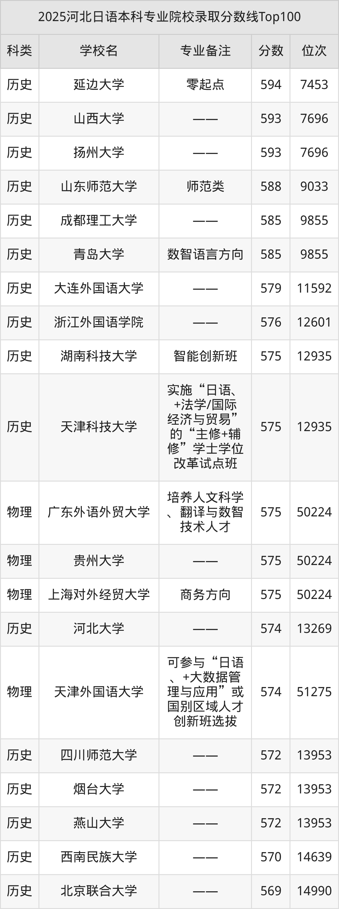 2025年河北日语分数线排名前5的大学名单(本科最难报考):