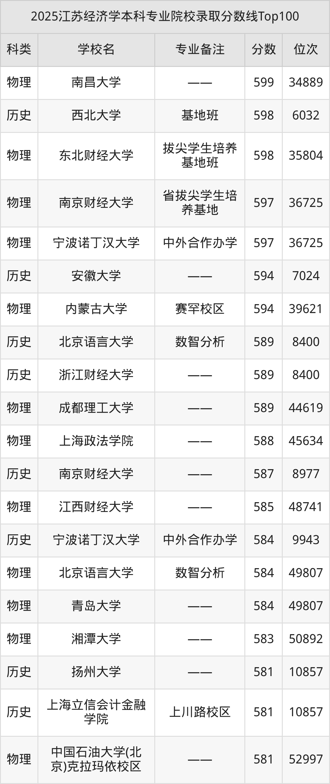 1、吉林大学:经济学(匡亚明班)638分、物理类位次8363名;