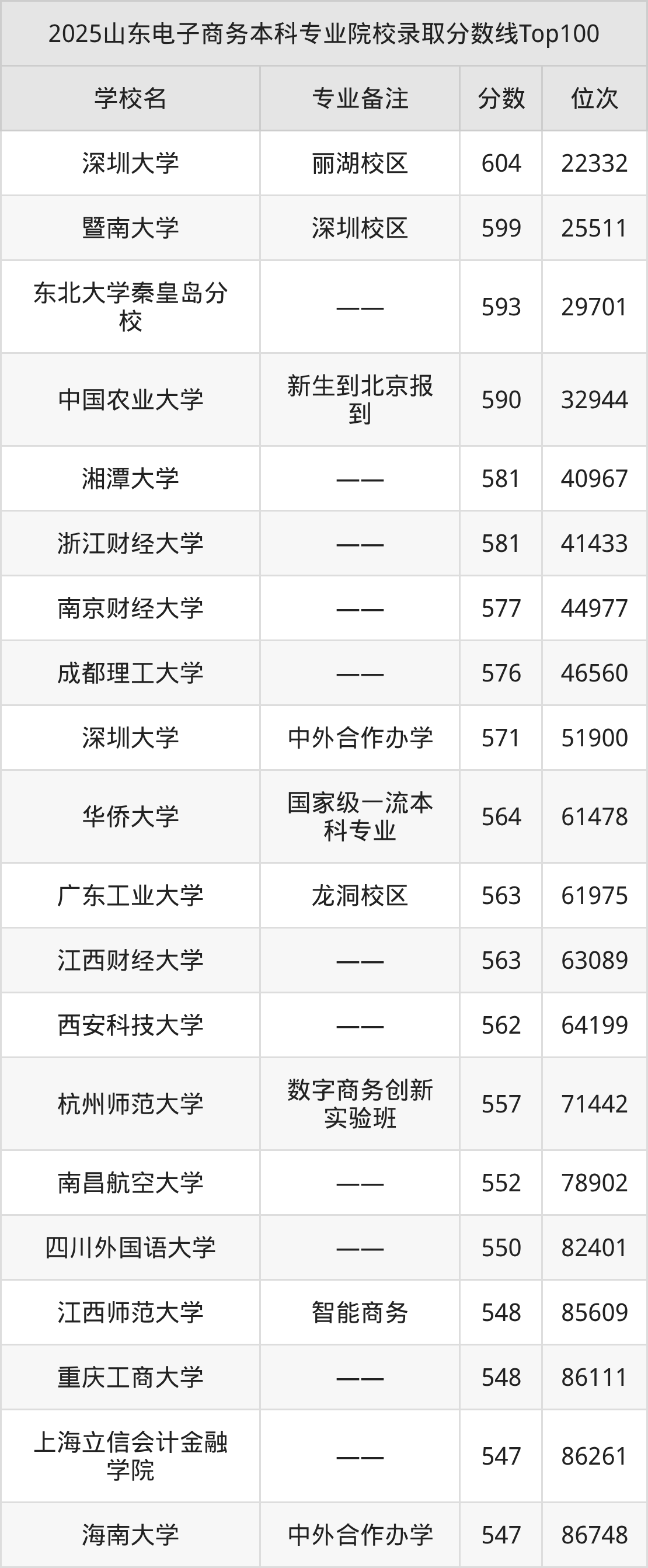 2、暨南大学:电子商务(深圳校区)599分、位次25511名;