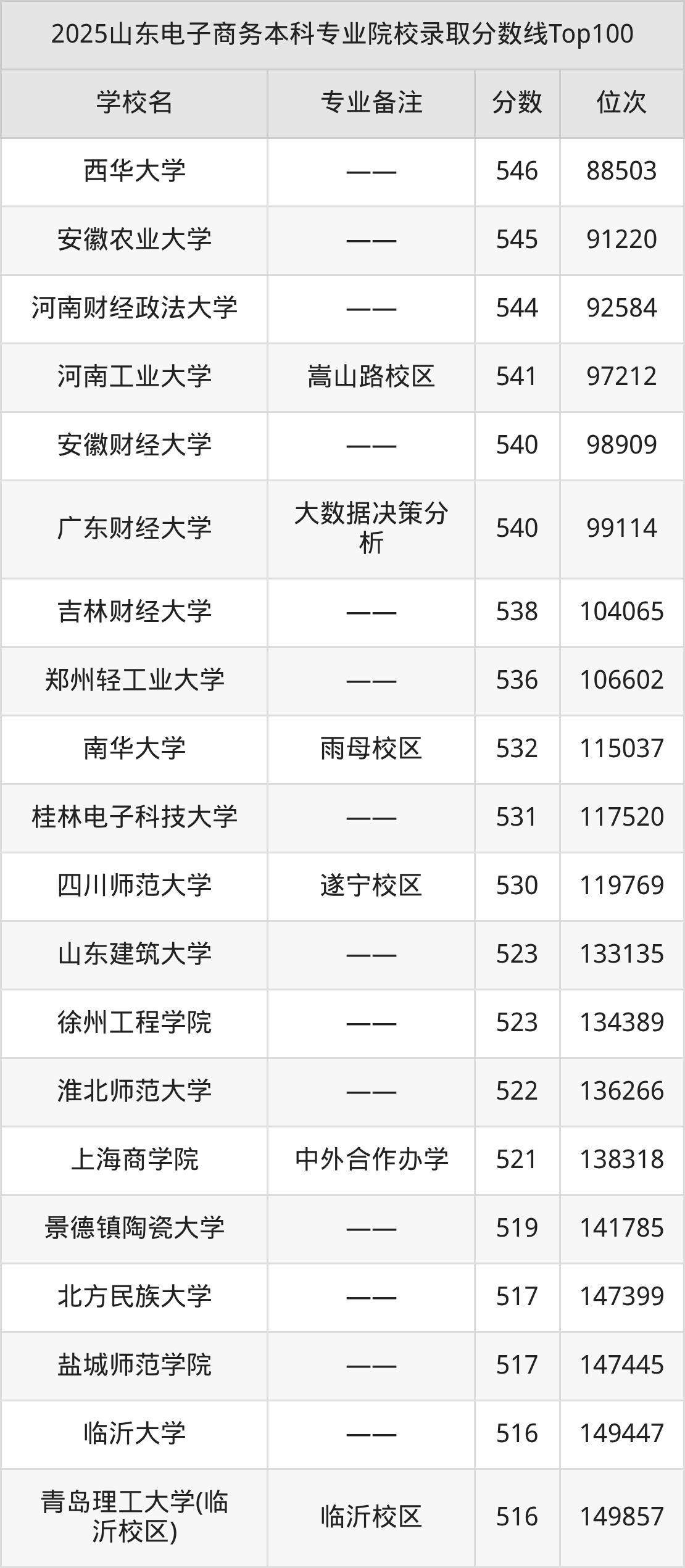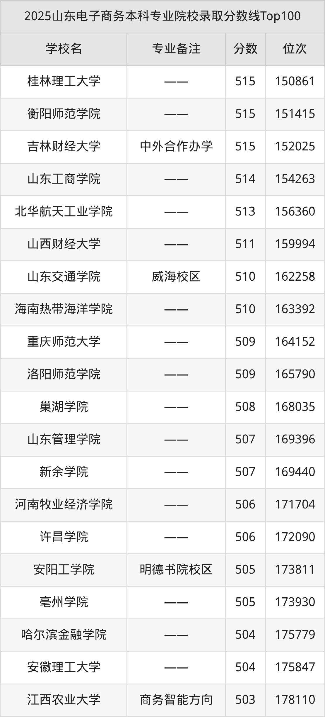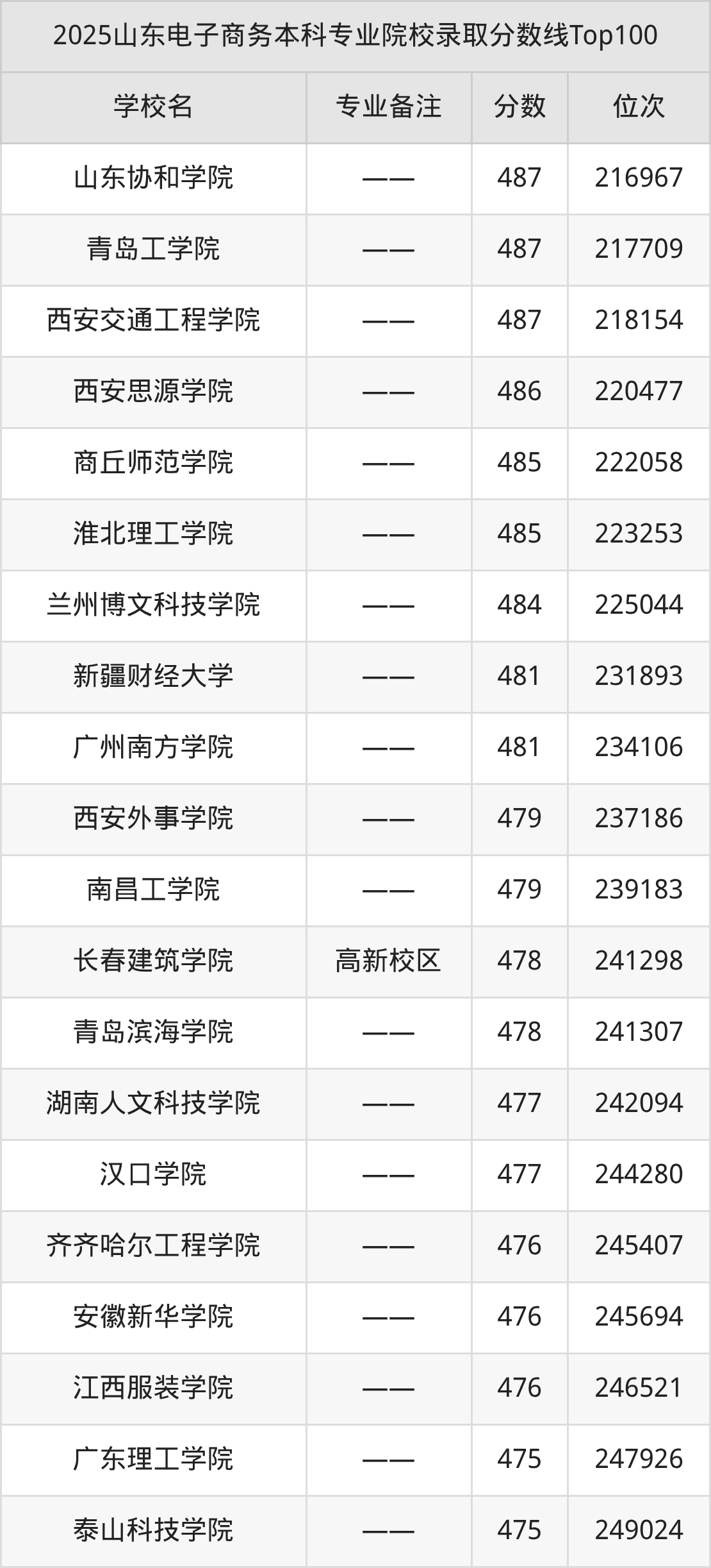 2025年山东电子商务分数线排名前5的大学名单(本科最难报考):
