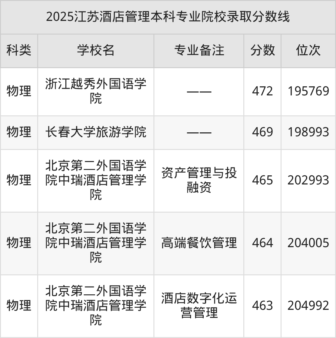 2025年江苏酒店管理分数线排名前5的大学名单(本科最难报考):
