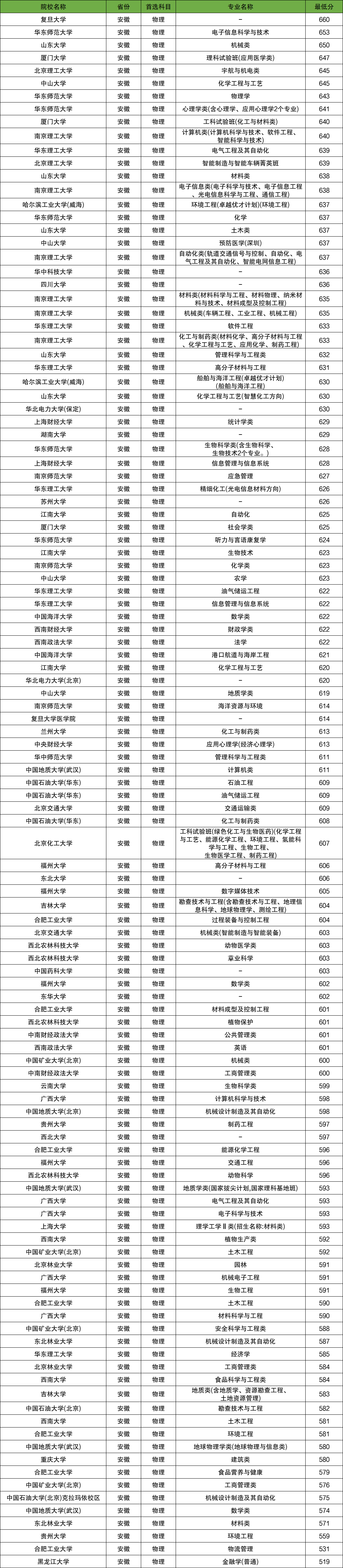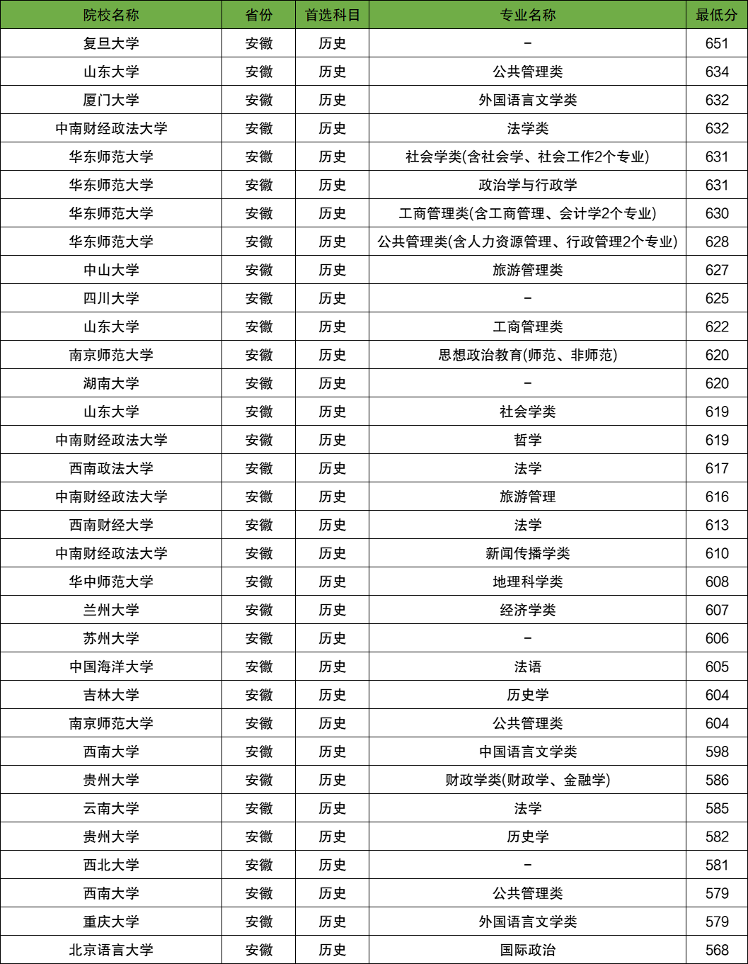 以下将介绍农村专项计划招生大学在安徽省物理类、历史类中分数情况。