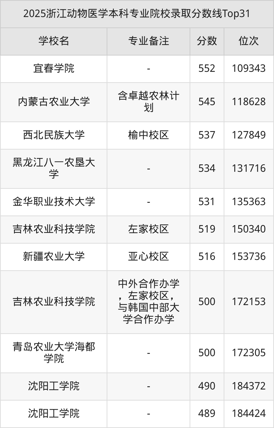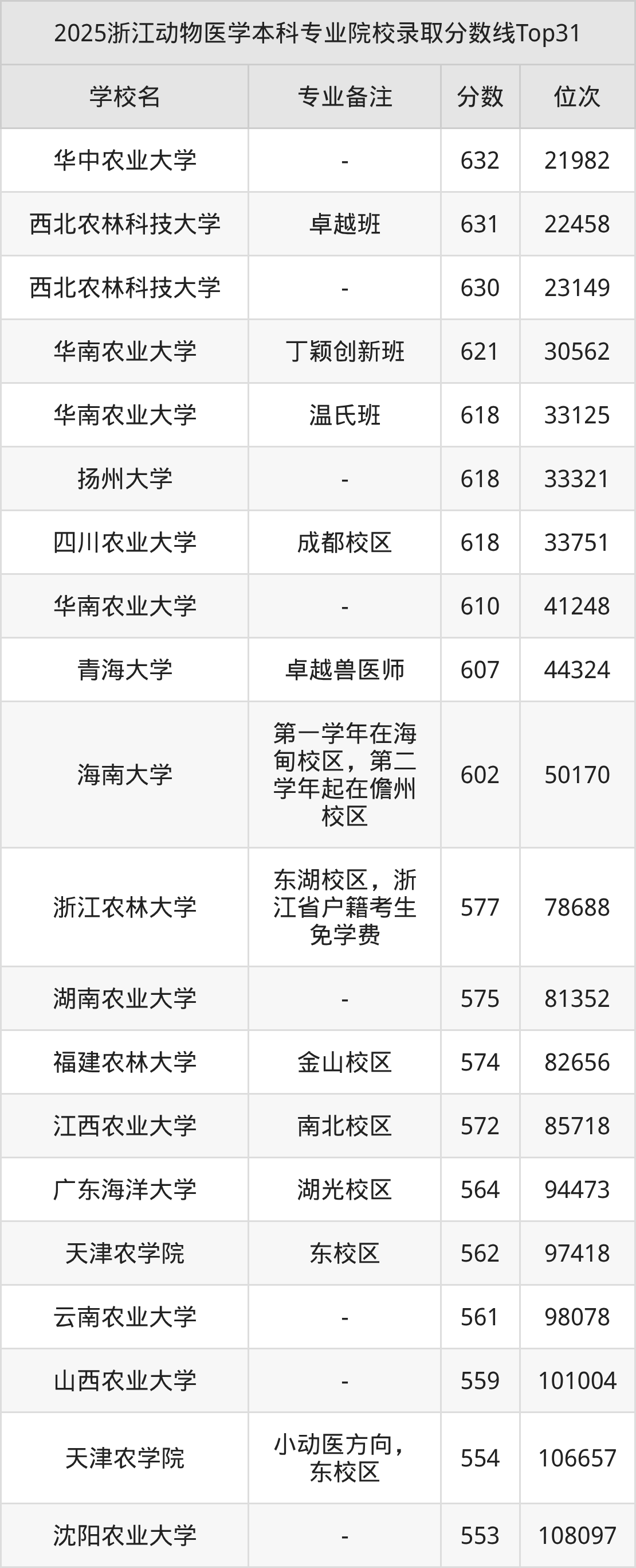 2、西北农林科技大学:动物医学(卓越班)631分、位次22458名;