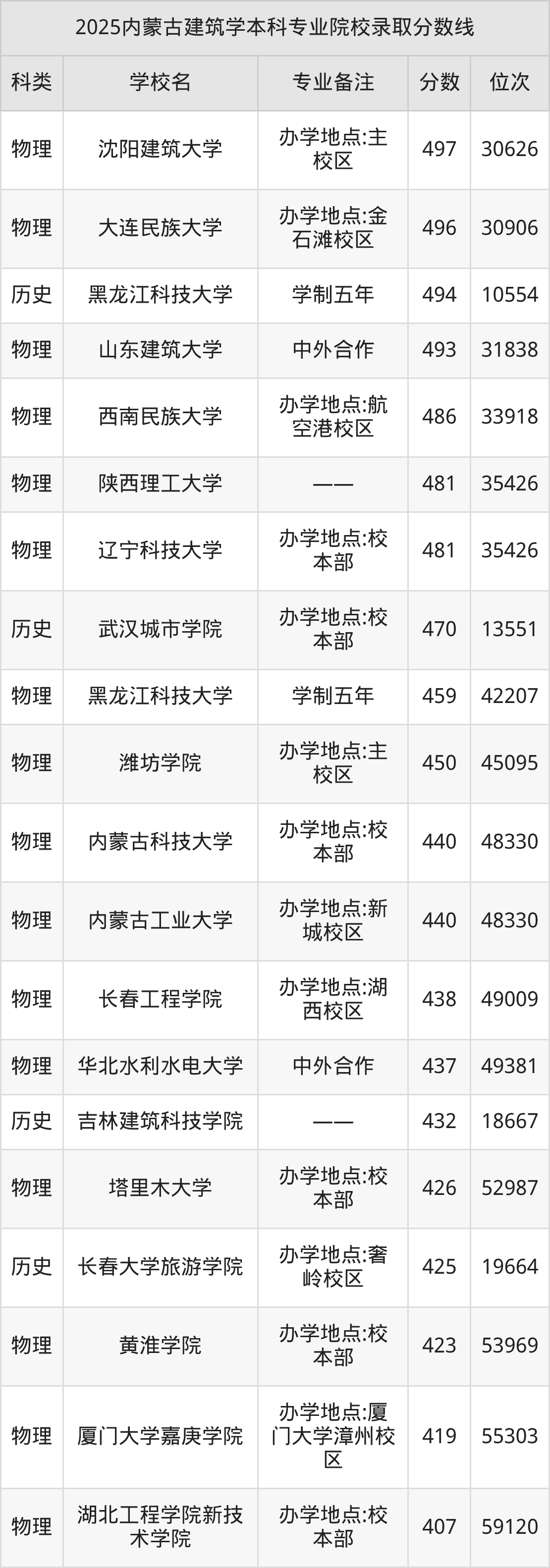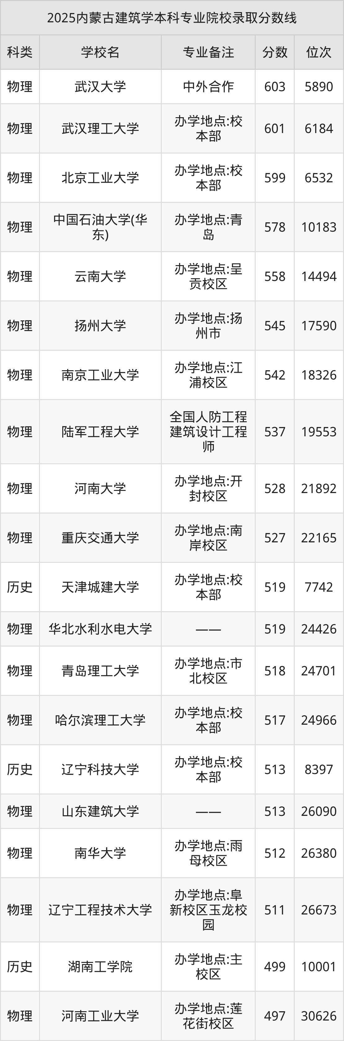 2025年内蒙古建筑学分数线排名前5的大学名单(本科最难报考):