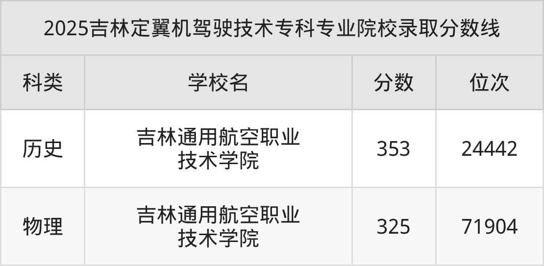 1、吉林通用航空职业技术学院:定翼机驾驶技术353分、历史类位次24442名;
