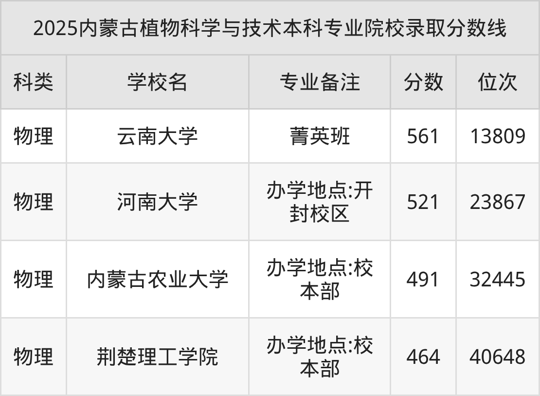 2025年内蒙古植物科学与技术分数线排名前4的大学名单(本科最难报考):