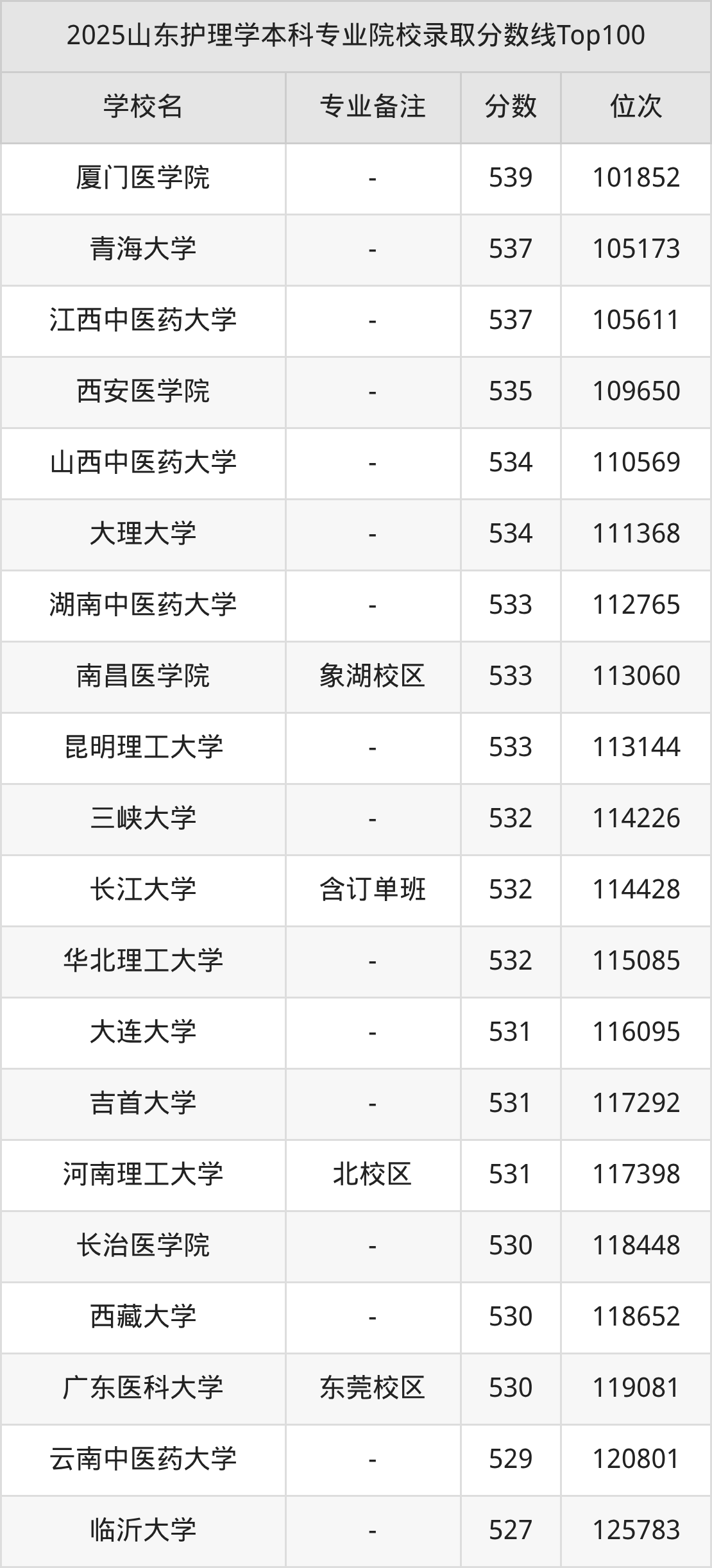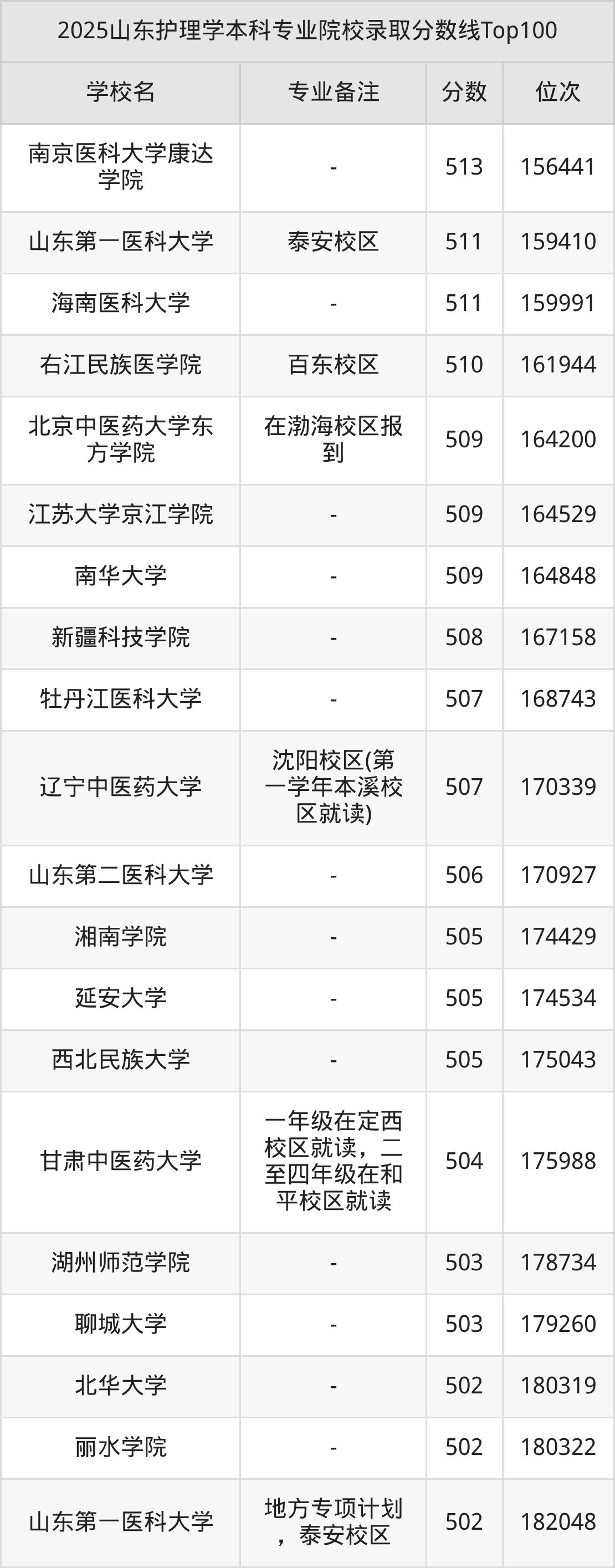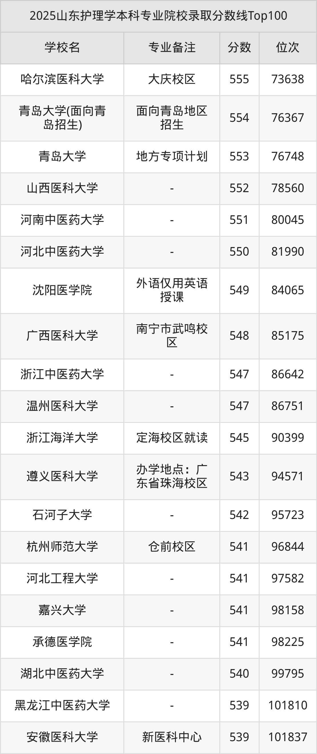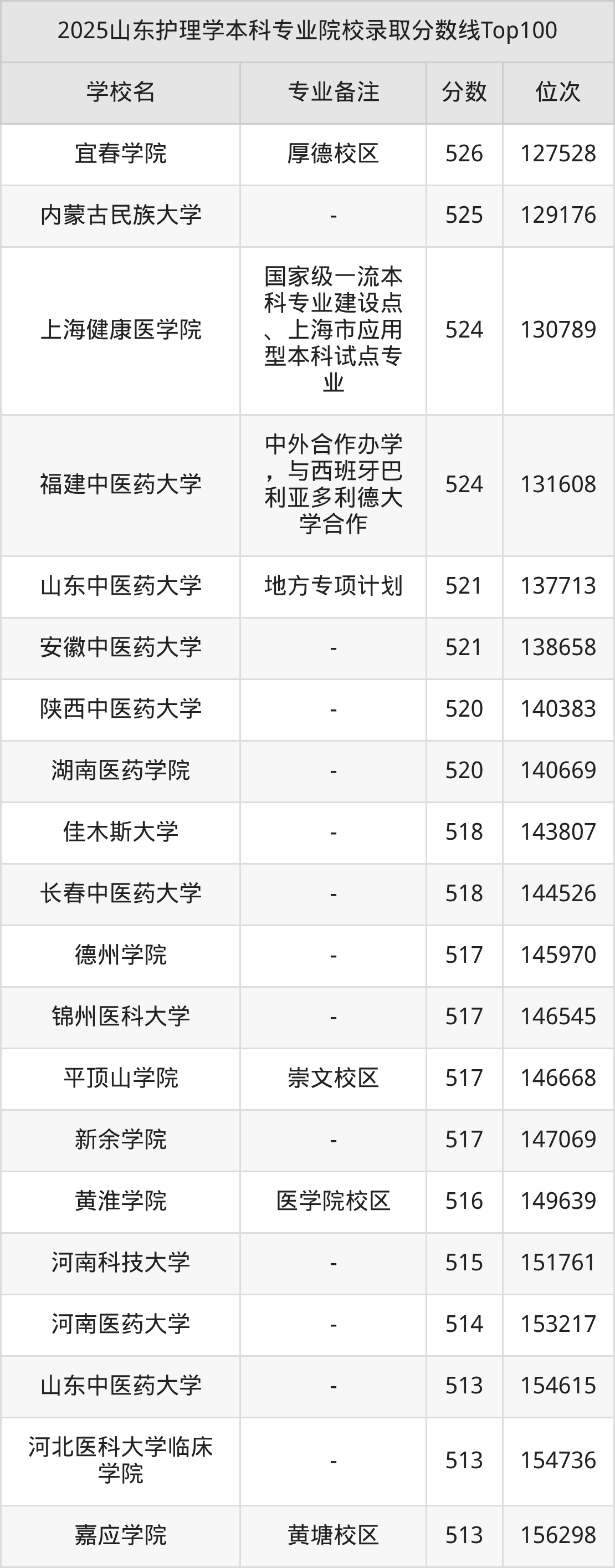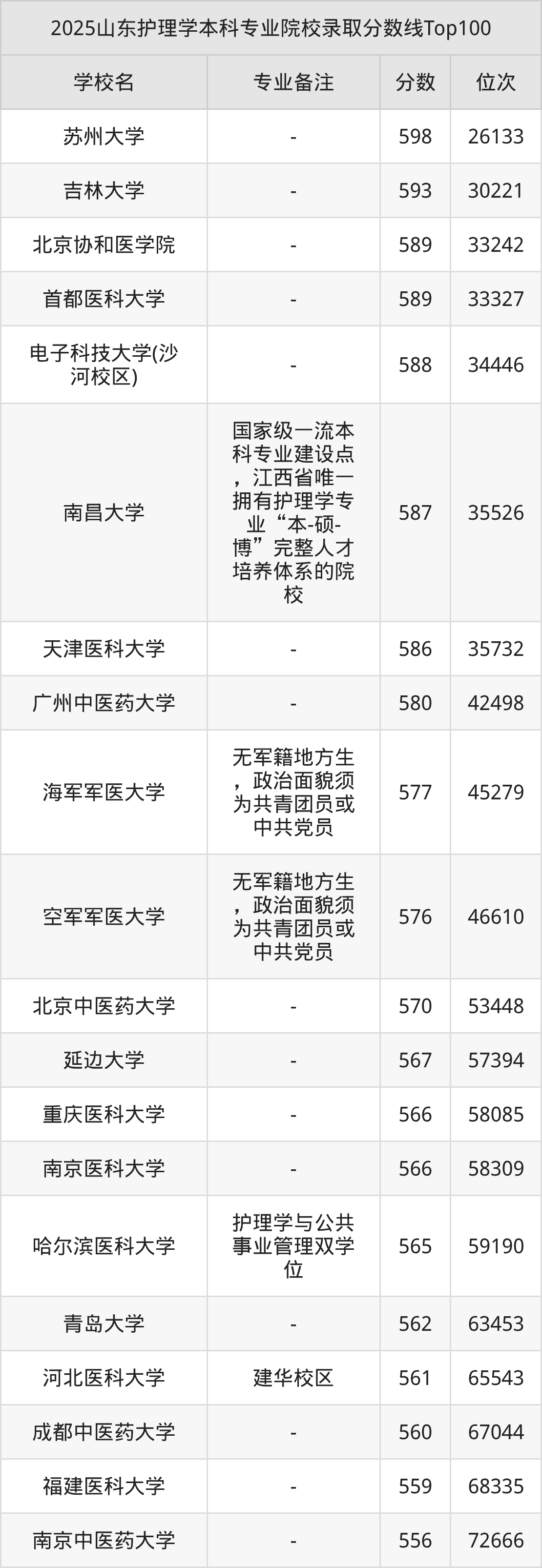2025年山东护理学分数线排名前5的大学名单(本科最难报考):