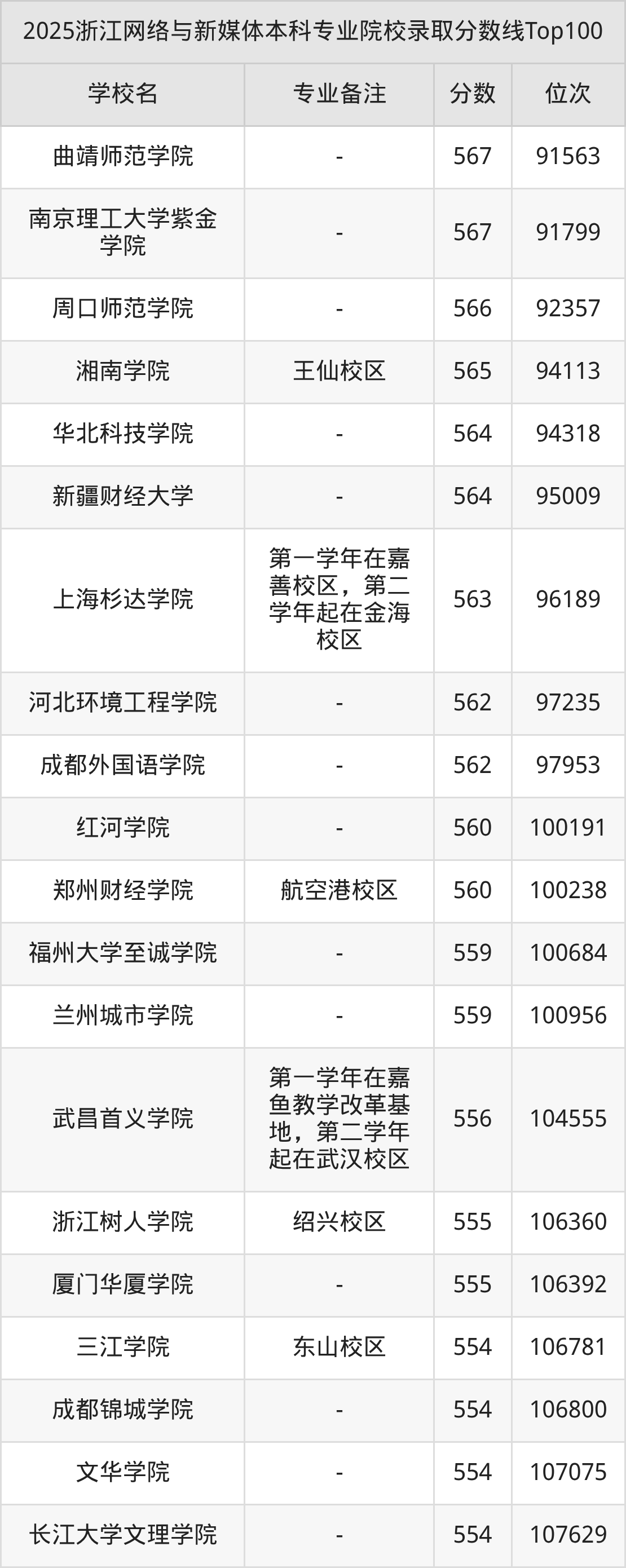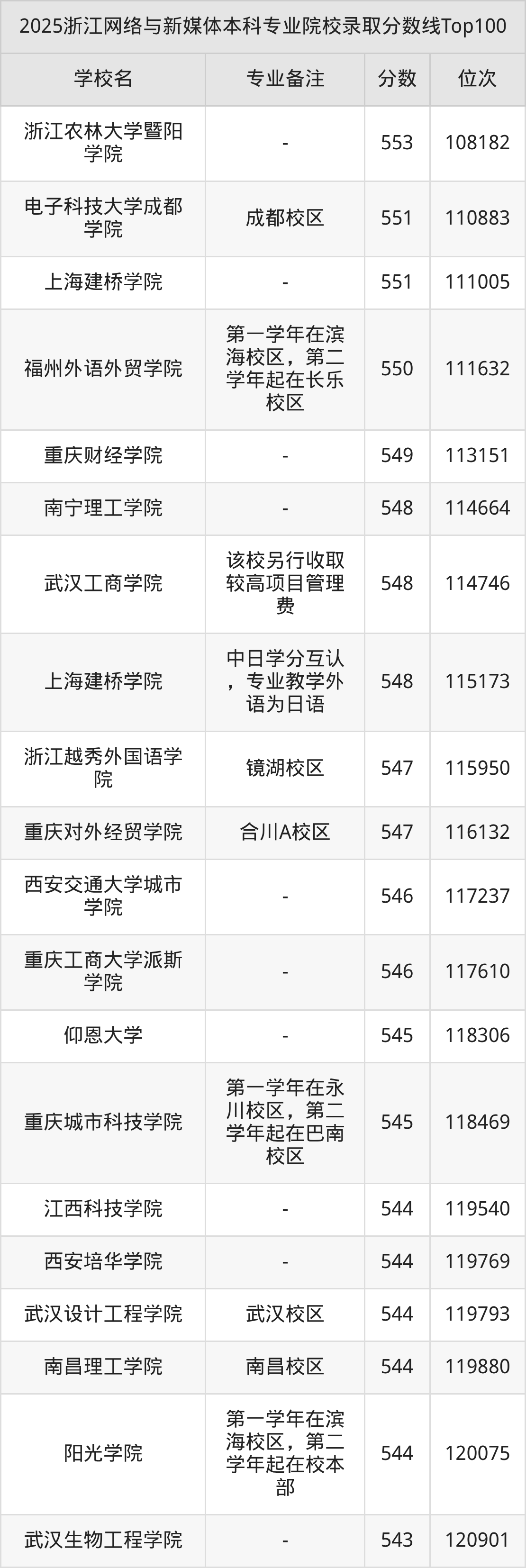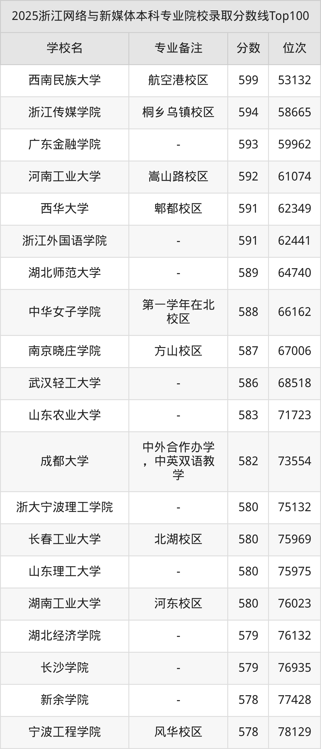 2025年浙江网络与新媒体分数线排名前5的大学名单(本科最难报考):