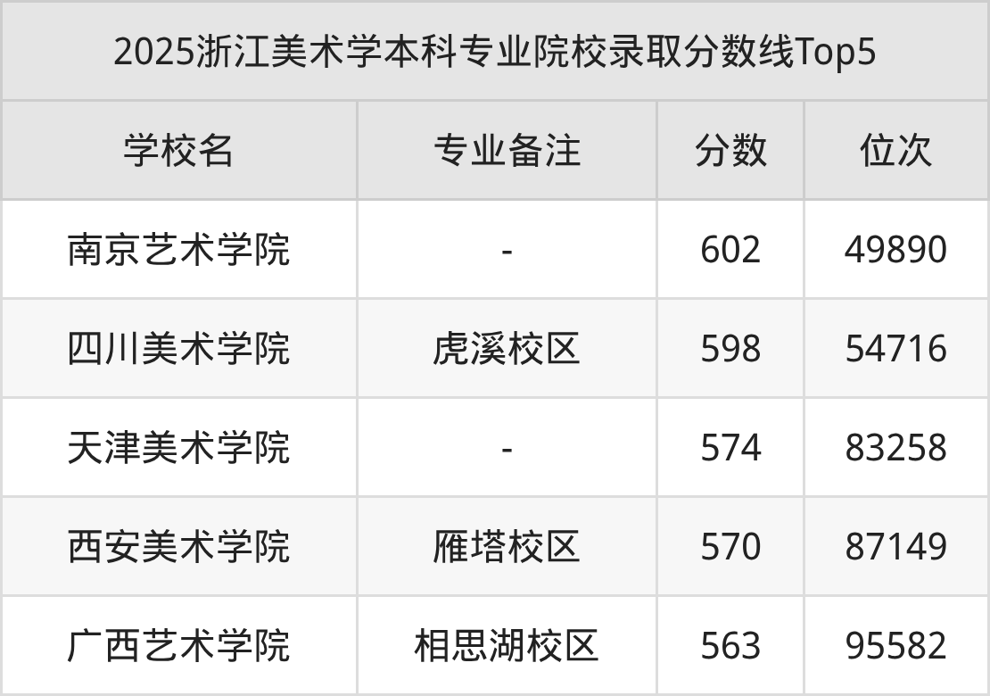 2025年浙江美术学分数线排名前5的大学名单(本科最难报考):