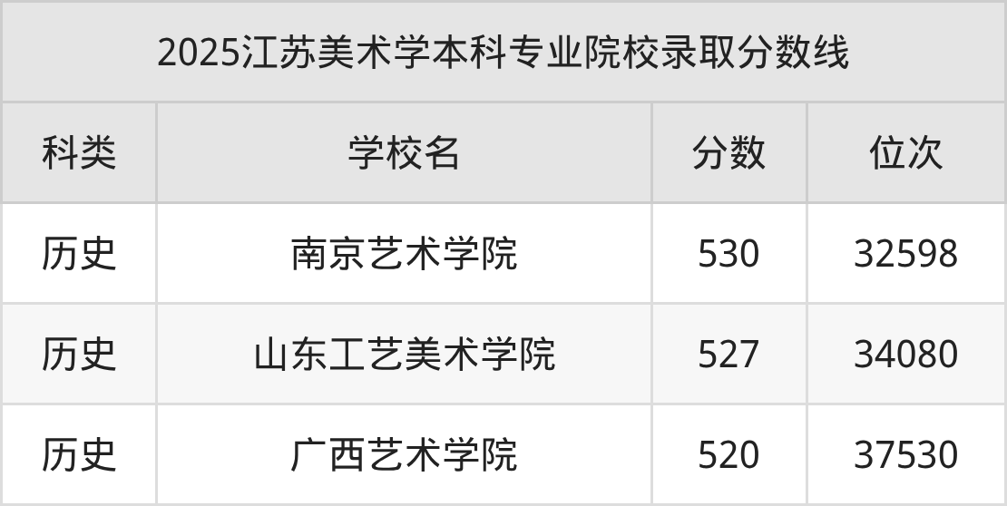 1、南京艺术学院:美术学530分、历史类位次32598名;