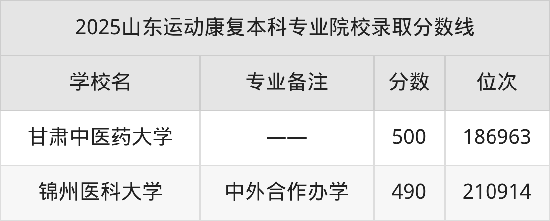 2025年山东运动康复分数线排名前5的大学名单(本科最难报考):