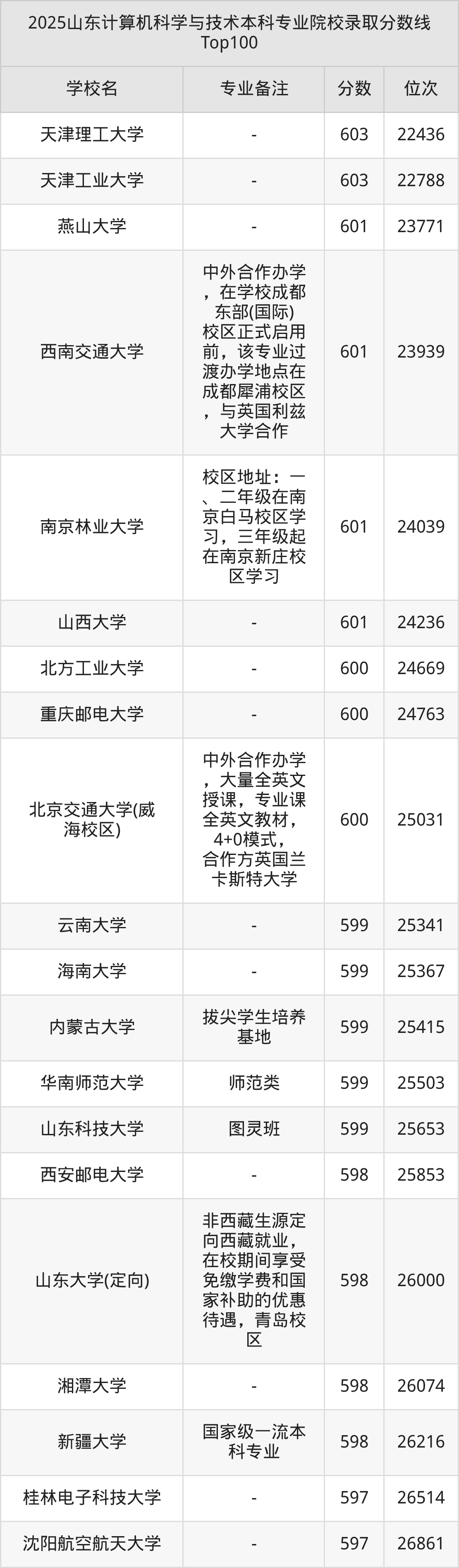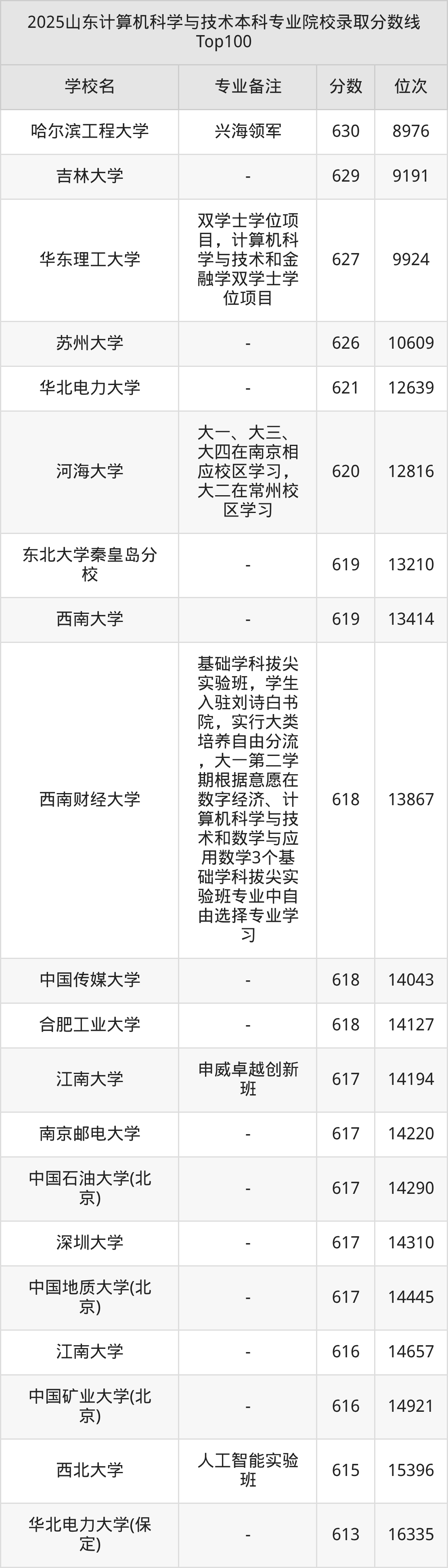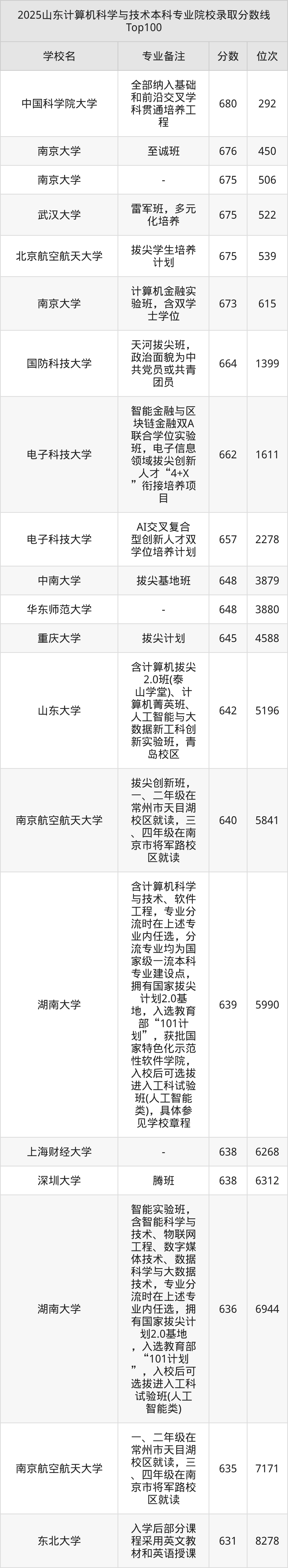 2025年山东计算机科学与技术分数线排名前5的大学名单(本科最难报考):