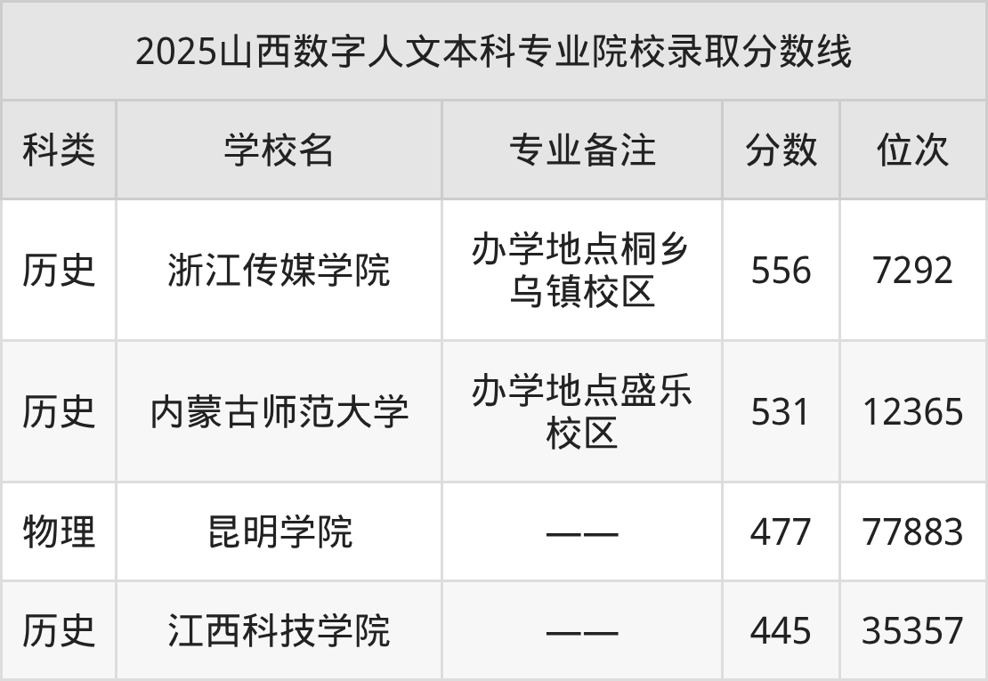 2025年山西数字人文分数线排名前4的大学名单(本科最难报考):