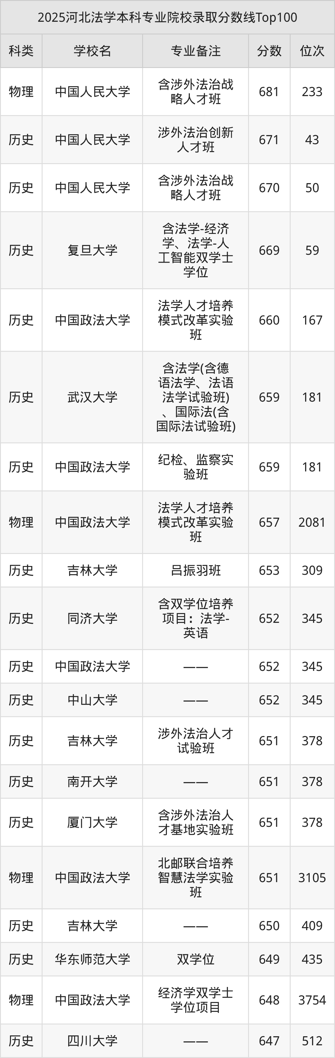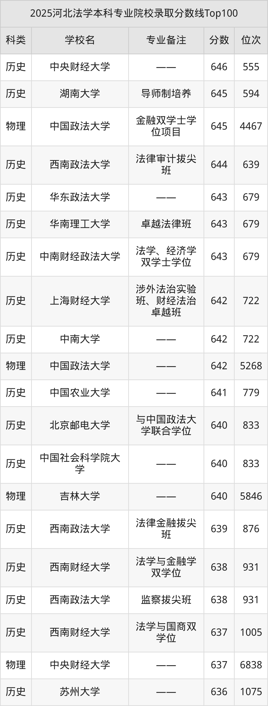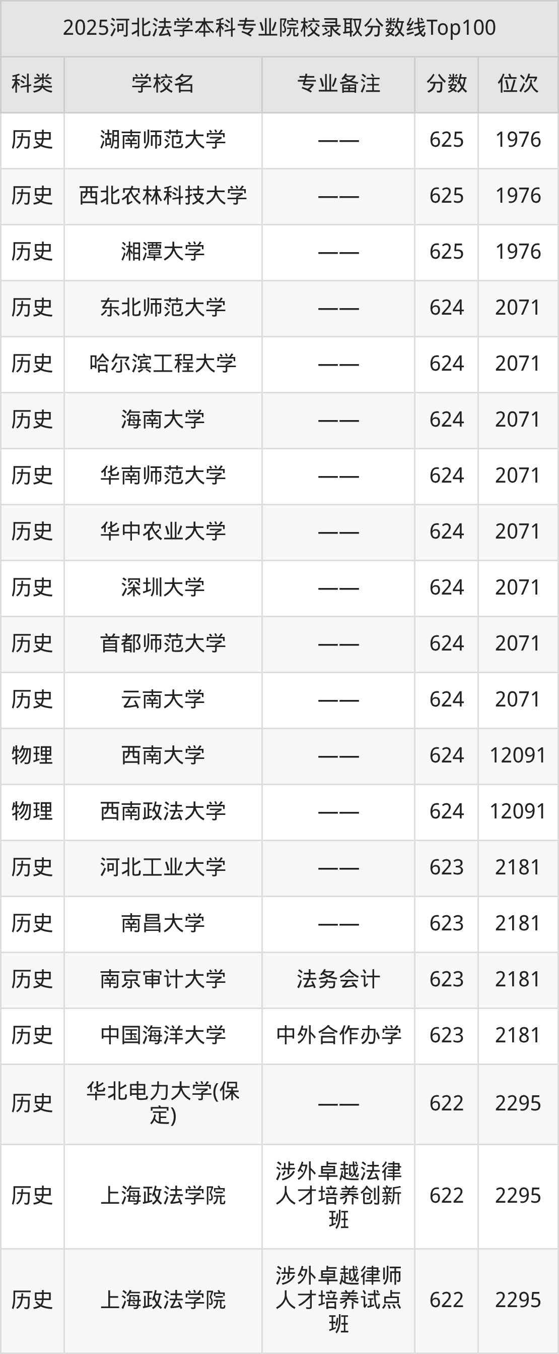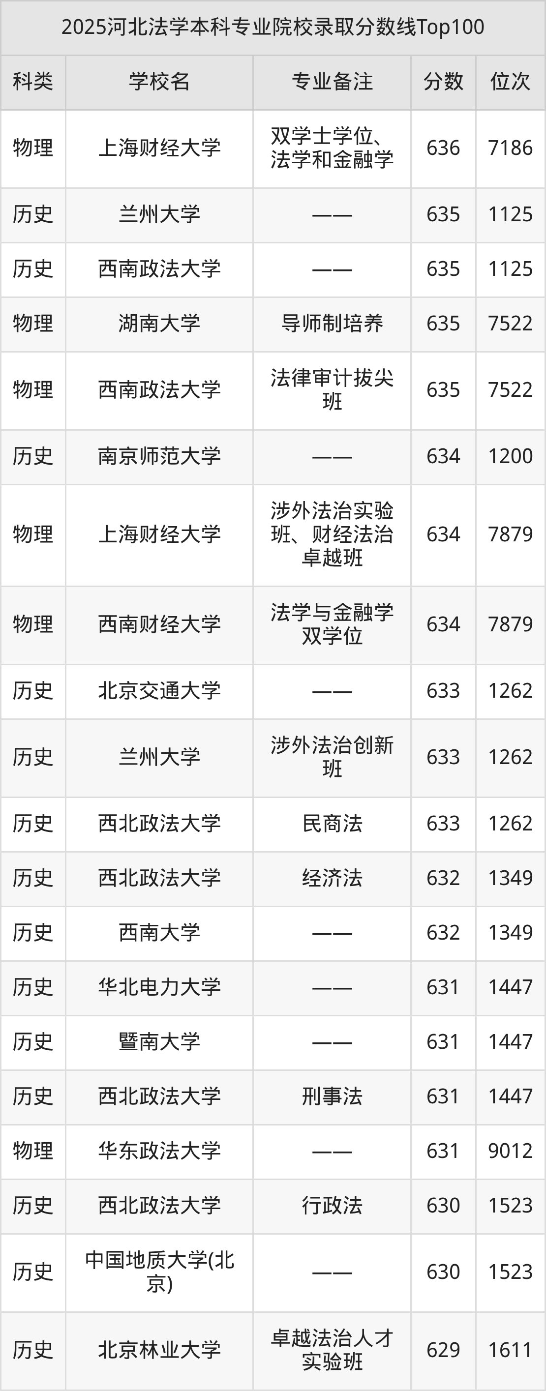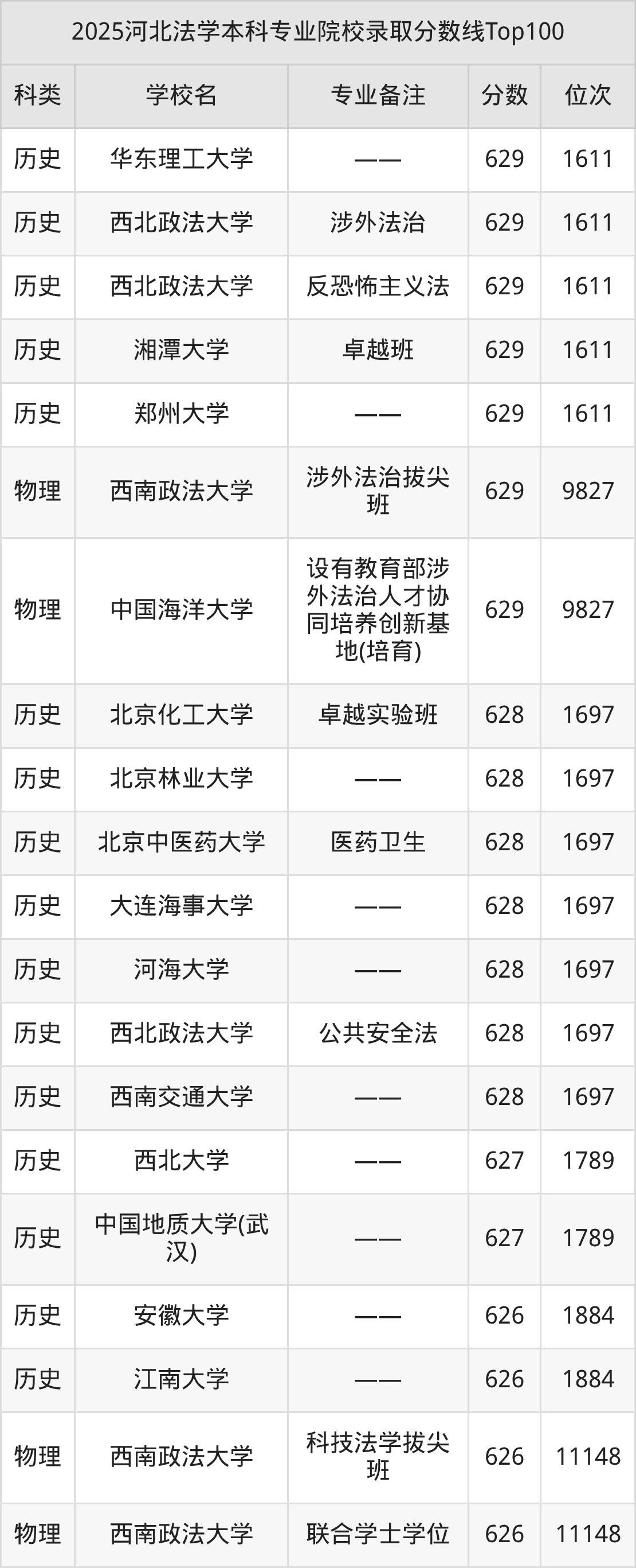 2025年河北法学分数线排名前5的大学名单(本科最难报考):