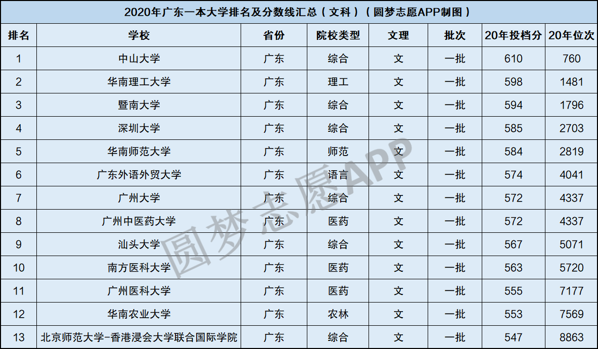 由于各个省份的录取分数不同,所以小编以湖北省为例,根据2020年湖北省教育考试院公布的招录数据,为大家整理出了2020年广东一本大学在湖北的排名及分数线汇总,具体如下: