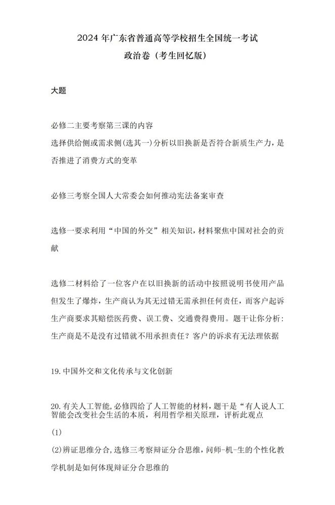 根据目前规定,广东高考政治答案解析考生回忆版已更新,政治真题正在整理中,考生可以收藏关注本文,以便及时了解最新试卷答案情况。关于更多高考答案,可以关注高考100网进行了解。