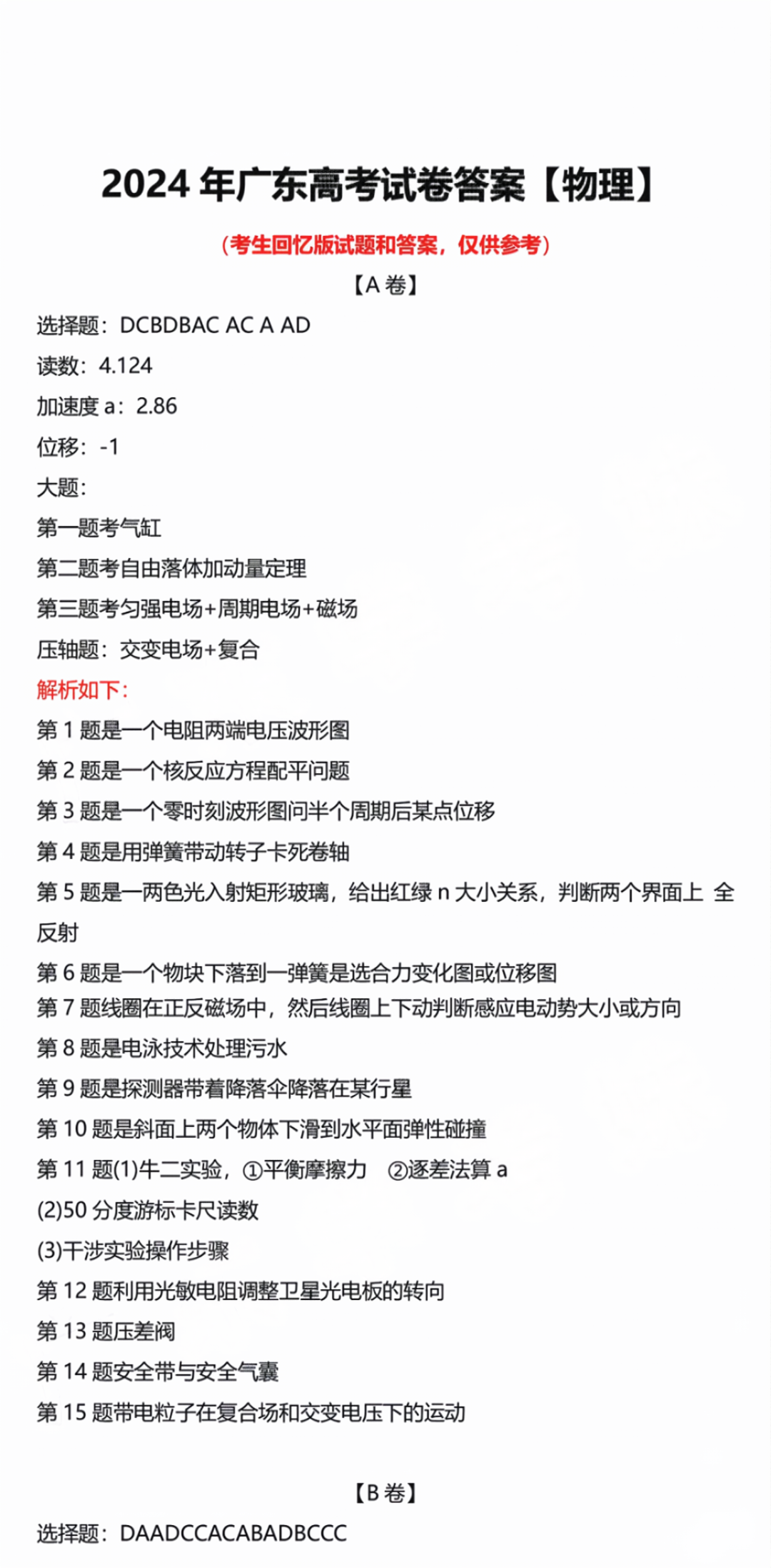 广东高考物理答案解析考生回忆版已经更新,官方真题及答案正在收集整理中,考生可以收藏关注本文,以便及时了解最新试卷答案情况。关于更多高考答案,可以关注高考100网进行了解。