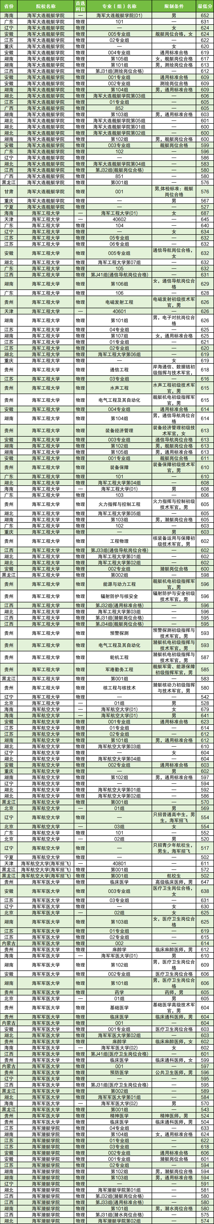 下面是海军军校录取分数线一览表(需滑动查阅):