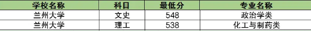 学校高校专项计划文科最低分数线是548分,对应的招生专业是政治学类;理科最低分数线是538分,对应的招生专业是化工与制药类。