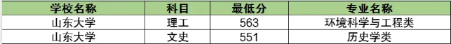 学校高校专项计划文科最低分数线是551分,对应的招生专业是历史学类;理科最低分数线是563分,对应的招生专业环境科学与工程类。