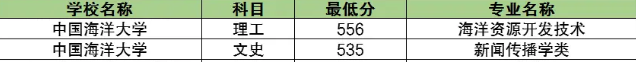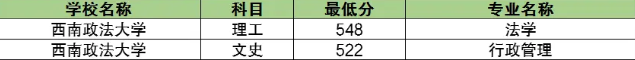 学校高校专项计划文科最低分数线是522分,对应的招生专业是行政管理;理科最低分数线是548分,对应的招生专业是法学。