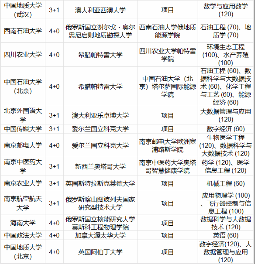 (二)其余院校中外合作办学项目名单