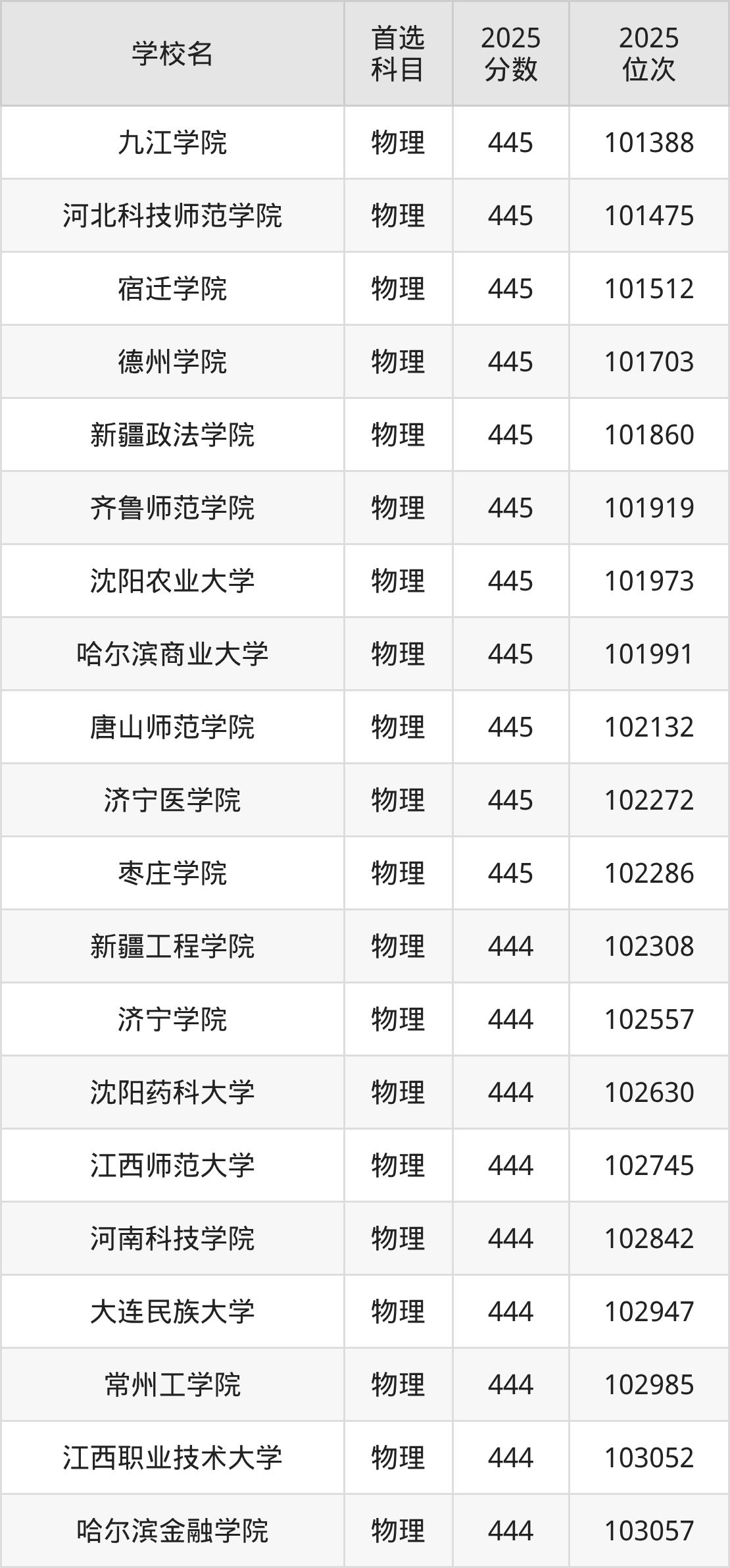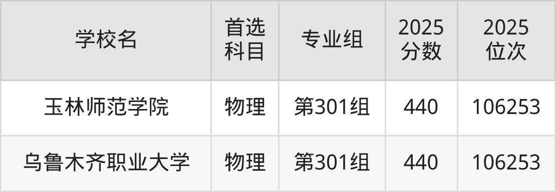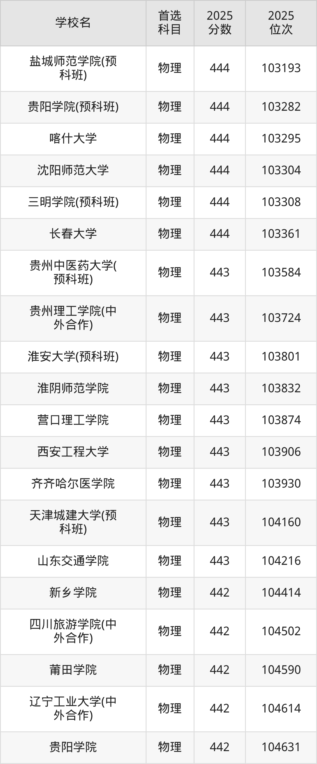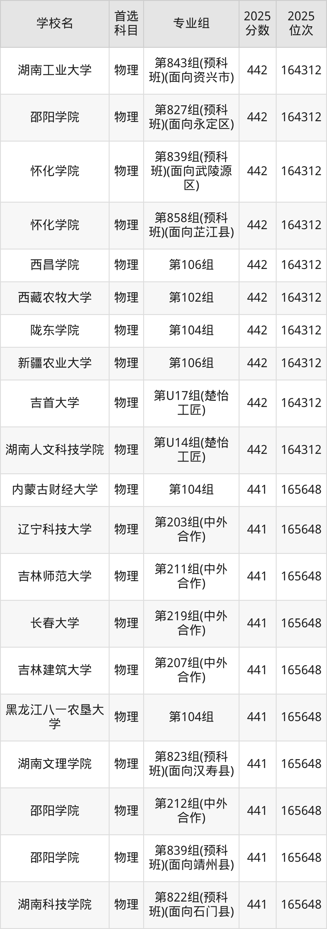 | 学校名 | 批次 | 2025 分数 | 2025 位次 |