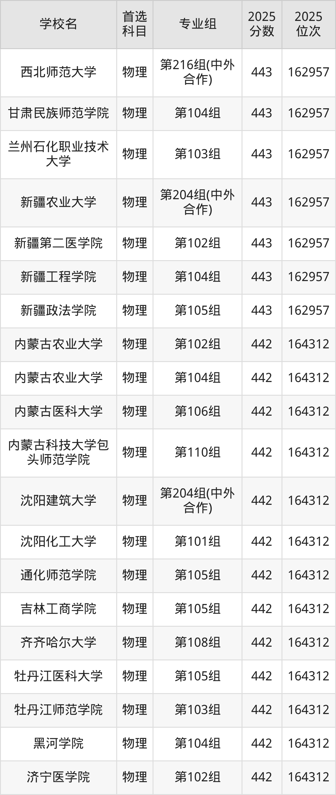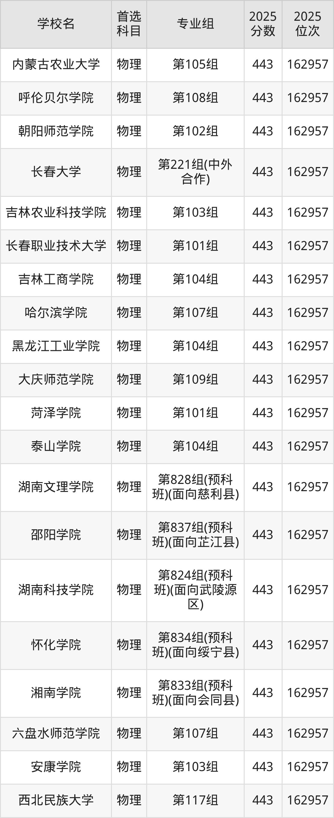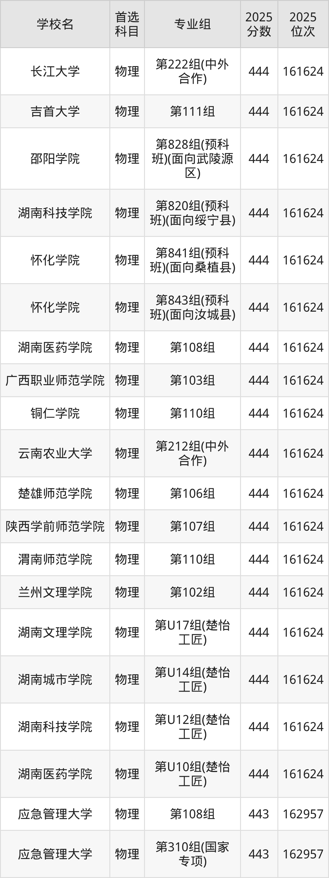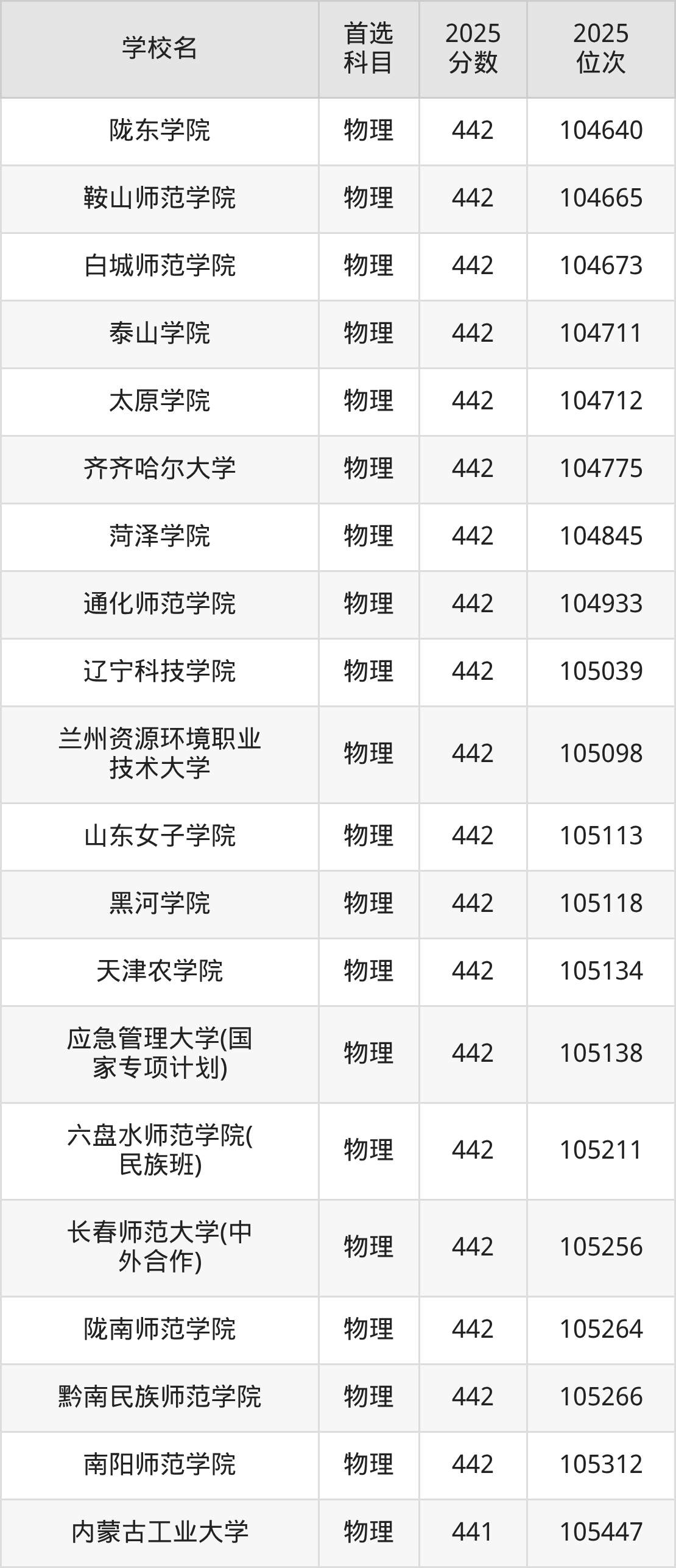 | 学校名 | 批次 | 2025 分数 | 2025 位次 |