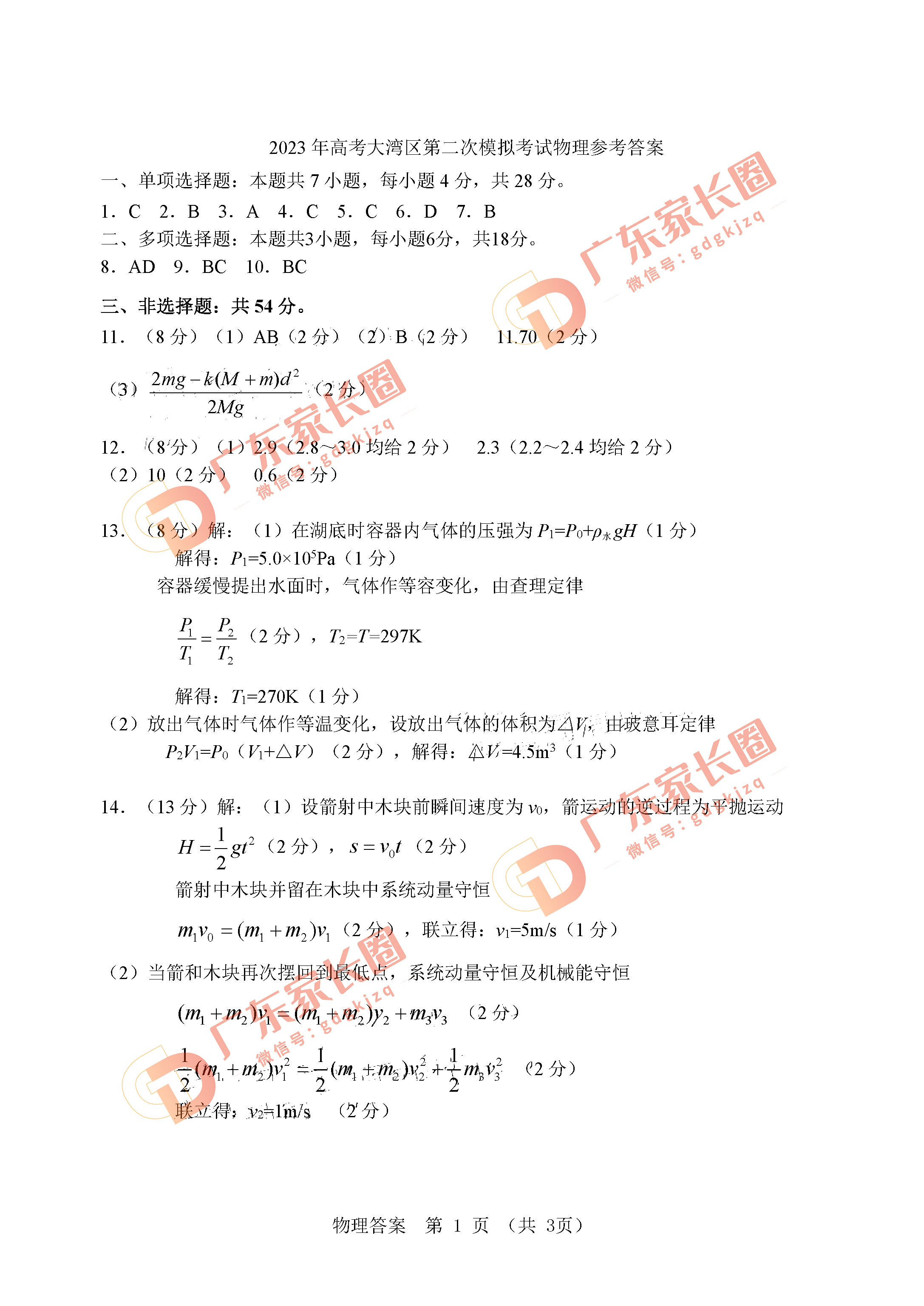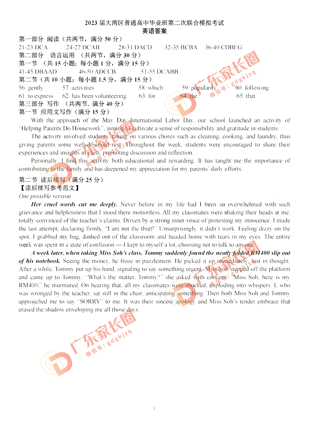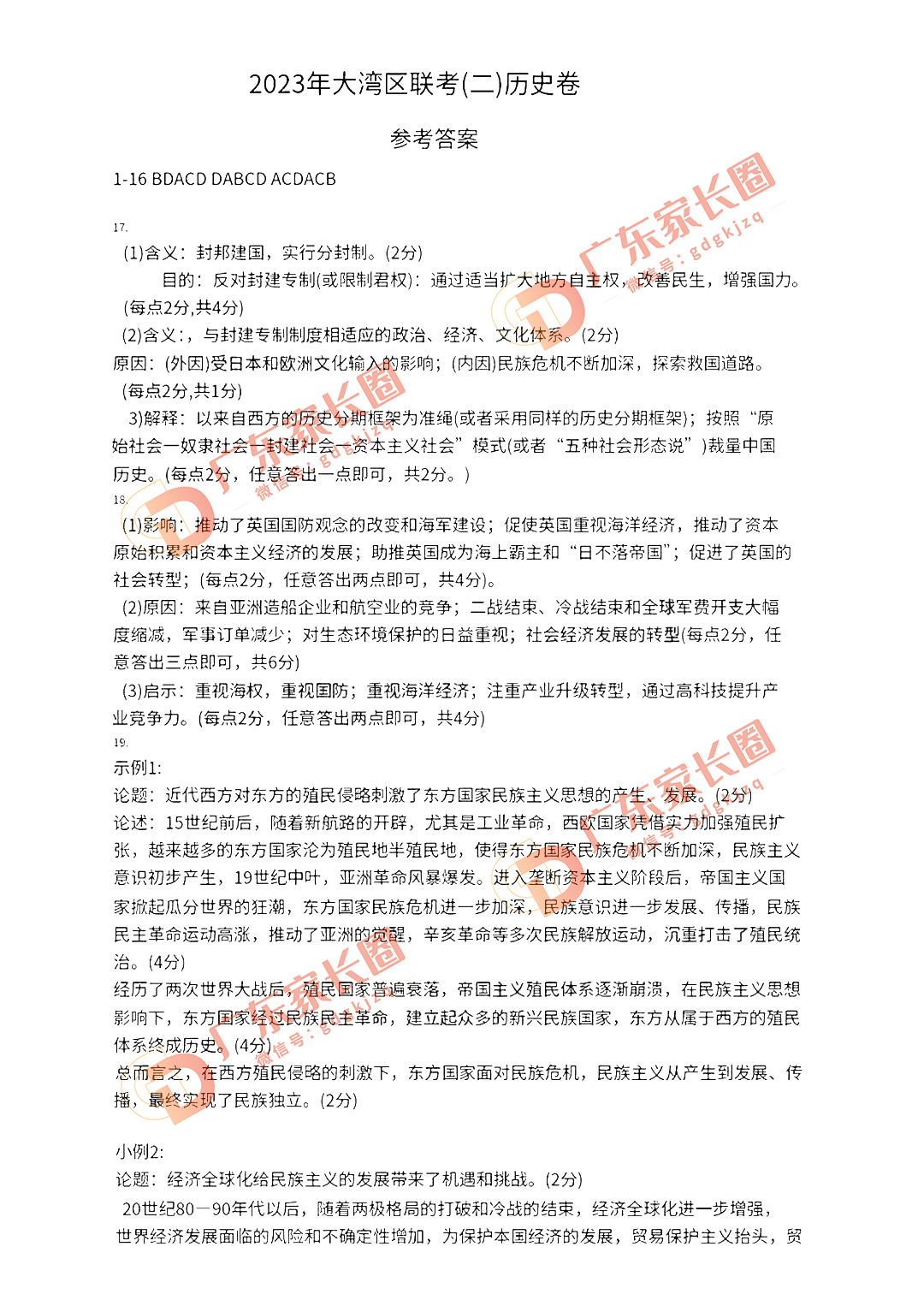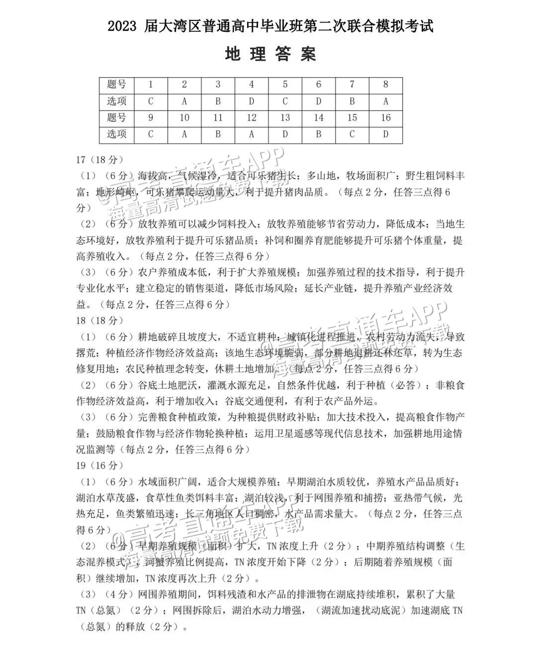 以下为2023大湾区高三第二次联考各科试卷及答案解析: