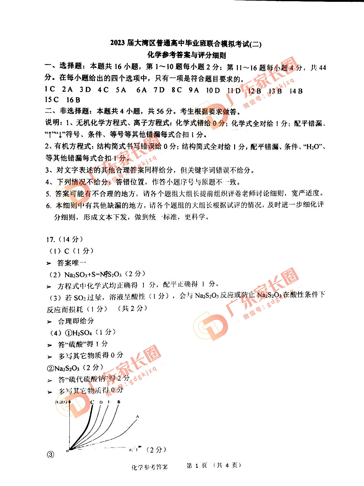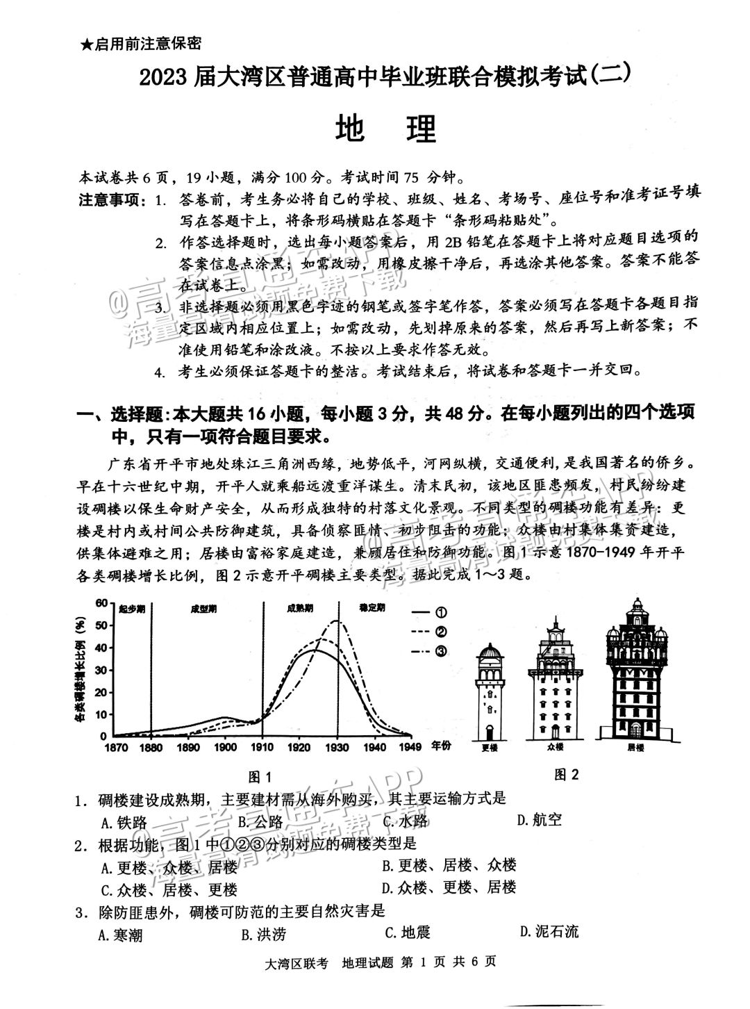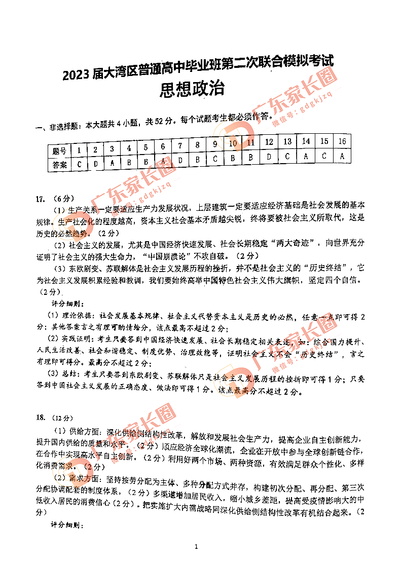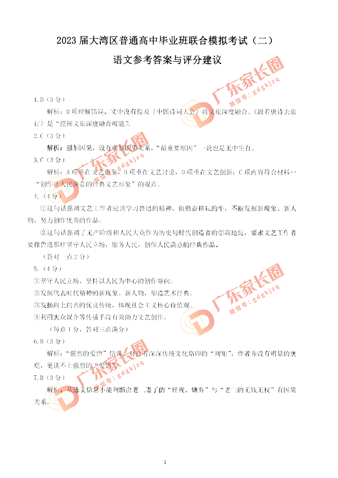 以下为2023大湾区高三第二次联考各科试卷及答案解析: