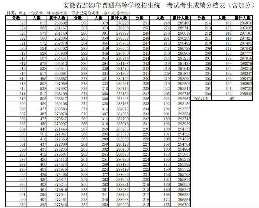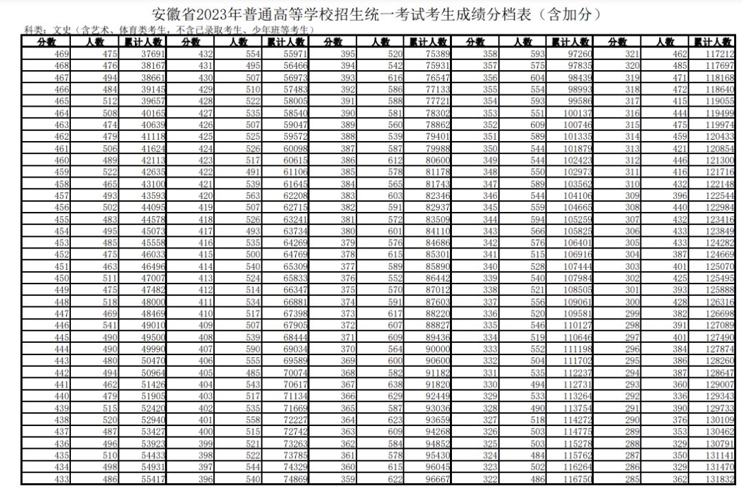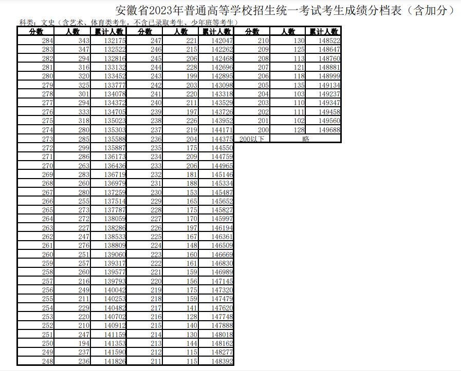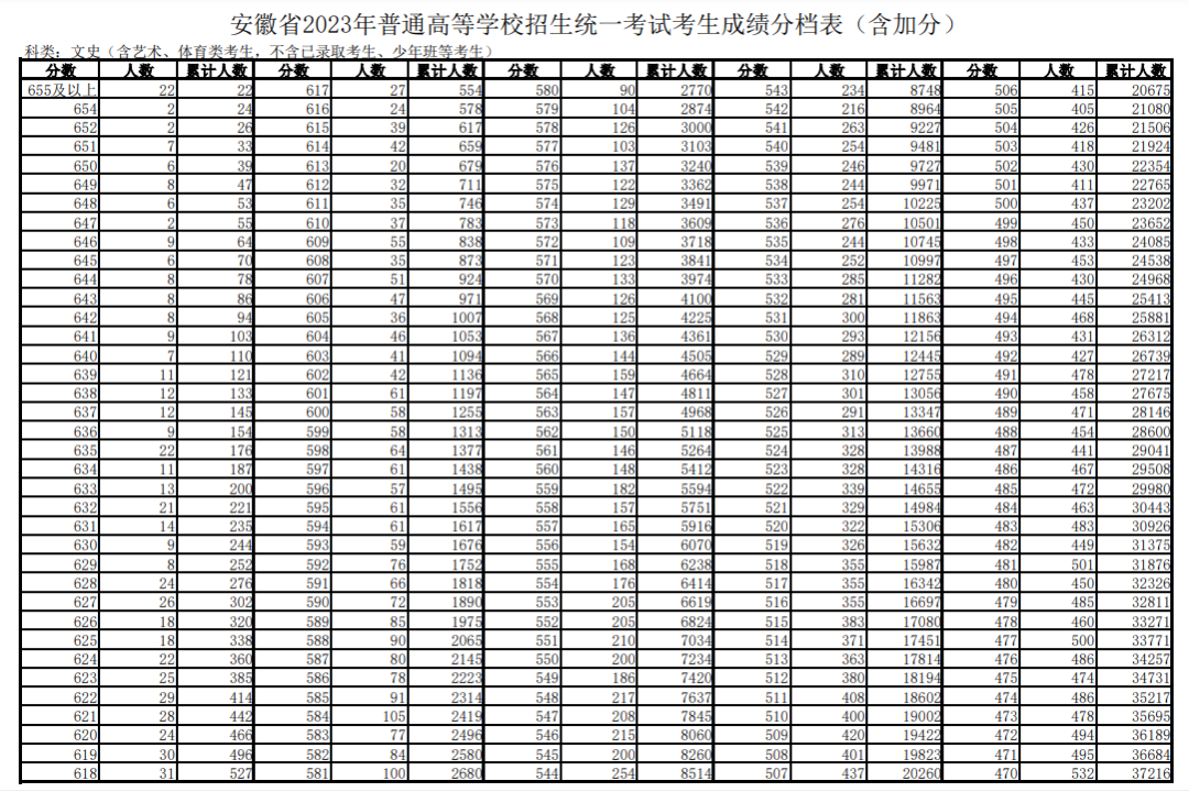 三.安徽高考一分一段表2023年公布